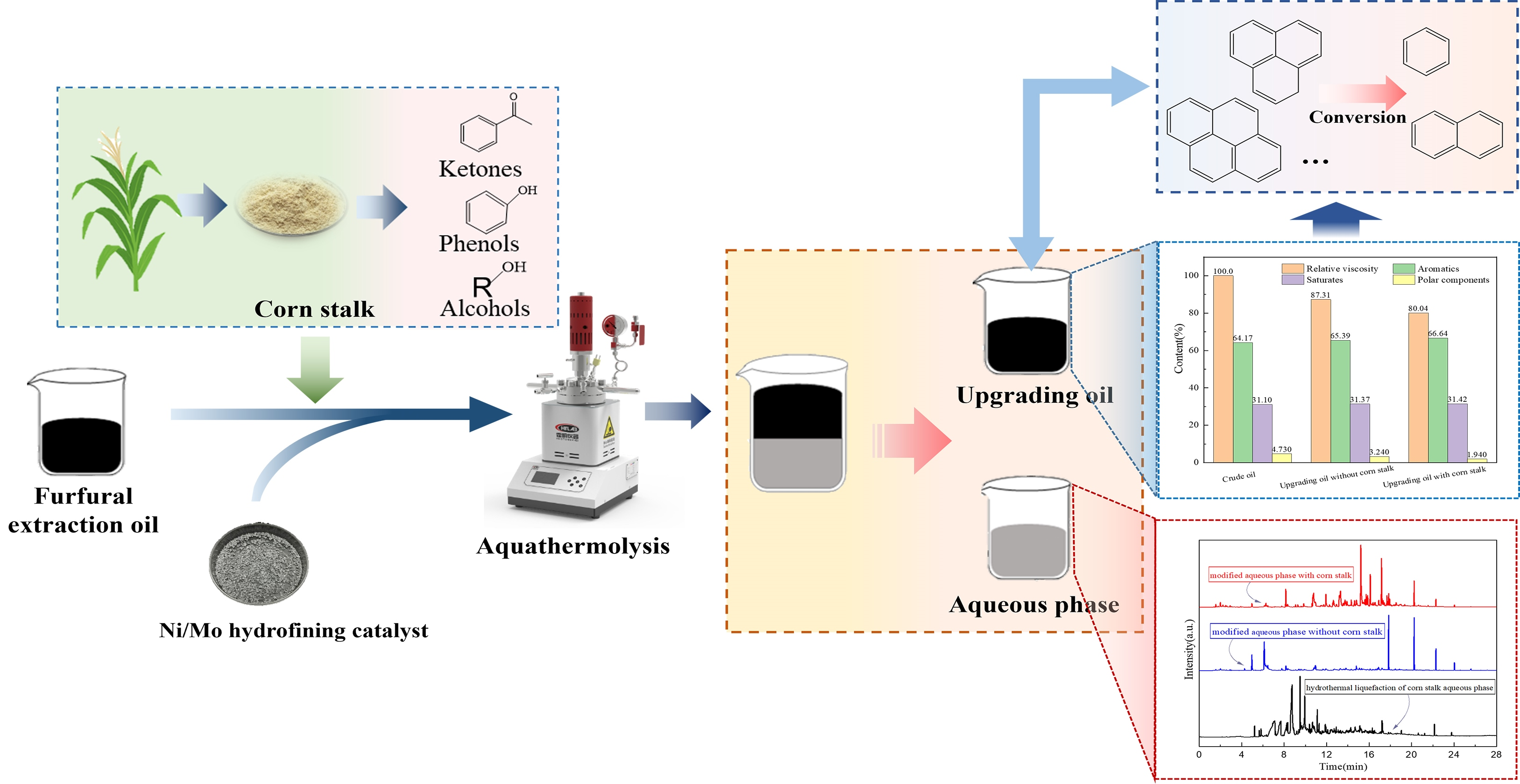 2 and oxygen-containing species during aquathermolysis, particularly when corn stalk is added.