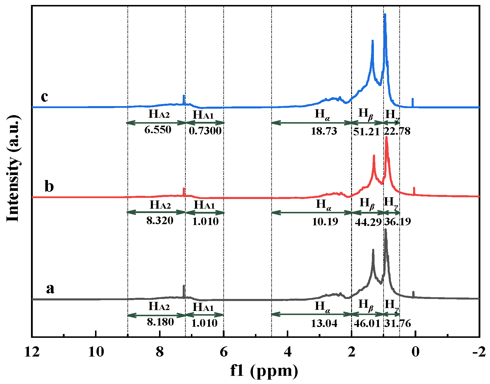 Table 4), the distribution of hydrogen attribution to different chemical shifts obtained by the area integral is displayed in