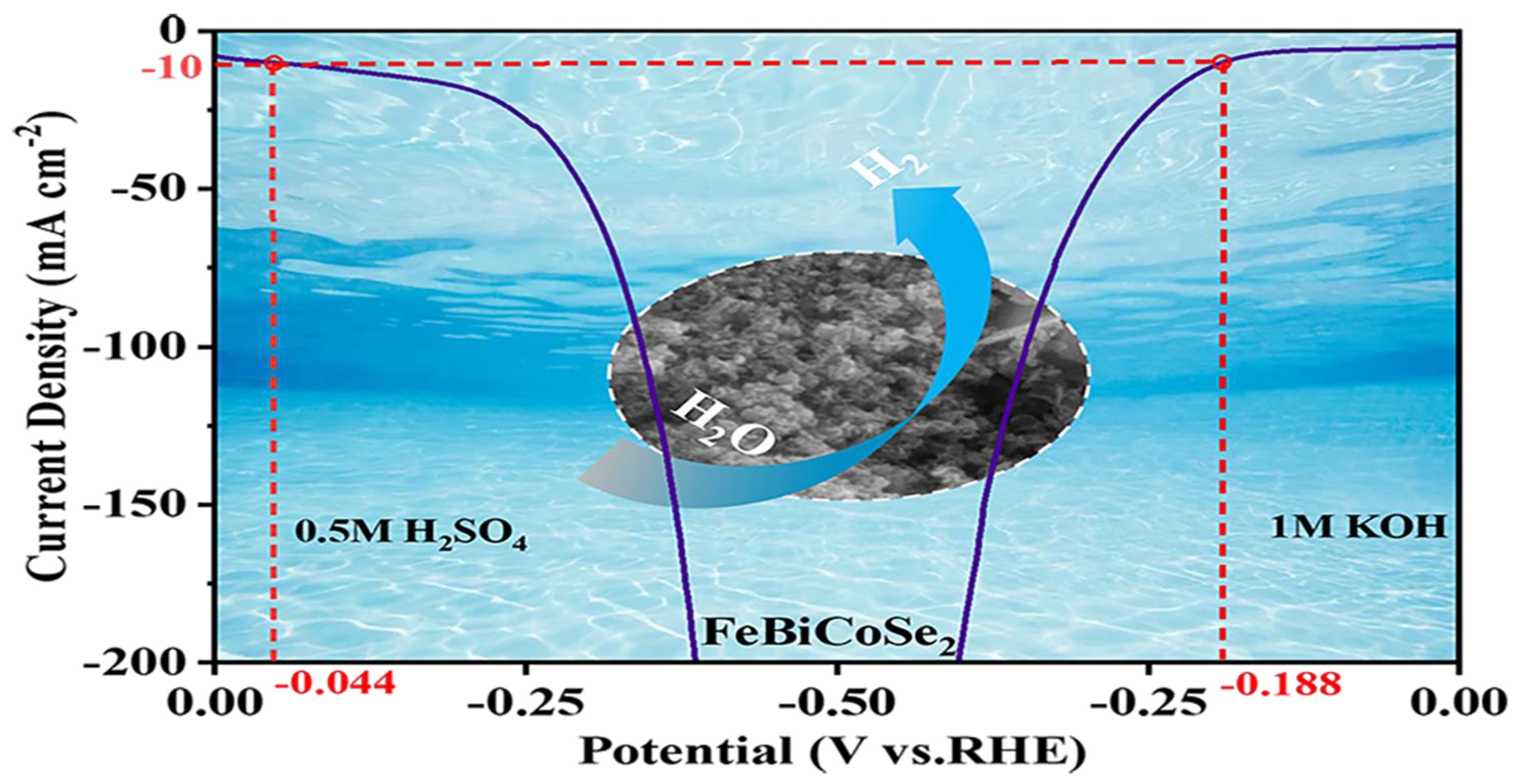 - Zhao, G.Q.; Li, P.; Rui, K.; Chen, Y.P.; Dou, S.X.; Sun, W.P. CoSe2/MoSe2 heterostructures with enriched water adsorption/dissociation sites towards enhanced alkaline hydrogen evolution reaction. Chem.-Eur. J. 2018, 24, 11158–11165. [Google Scholar] [CrossRef]