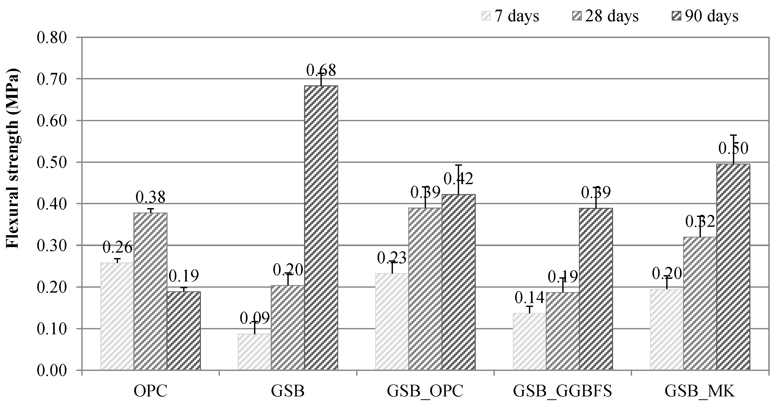 Figure 6. The conclusions drawn above apply to the bending results. However, at 90 days, the GSB has a higher flexural strength than GSB_MK.