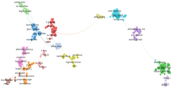 A map-based analysis of all the 749 authors who have at least three publications in this field is shown in Figure 5 below. The authors who do not publish joint research with others in the network are represented as isolated [22]. The total number of clusters is 194, with 1458 links and 3696 link strengths.