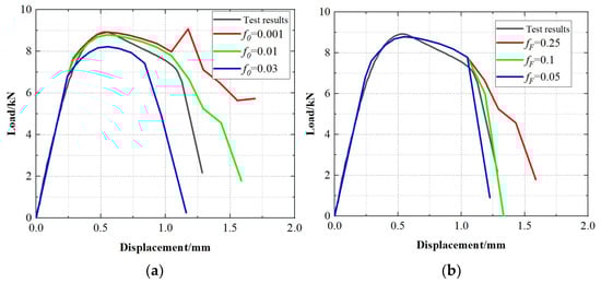 Calibration of damage parameters for X70 metamorphic layer. (a) f0 Effect on load-displacement curve. (b) fF Effect on load-displacement curve.