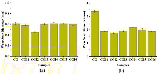 3.2. Wear and Frictional Analysis of the Grease Samples