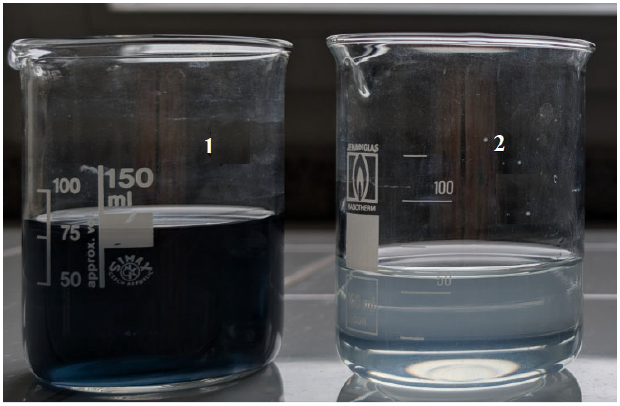 The TDS and total suspended solid (TSS) concentrations were determined as described in the literature [31]. The TDS is determined by filtering a well-mixed solution sample through a membrane filter (pores—0.45 µm; initially determined constant weight after heating at 105 ± 1 °C) into a weighted dish; evaporating the filtrate; and drying to a constant weight at 180 ± 1 °C. The increase in weight of the dish corresponds to the amount of TDS. The membrane filter with solids is dried to a constant mass at 105 ± 1 °C, and the increase in the weight of the membrane filter corresponds to the amount of TSS.