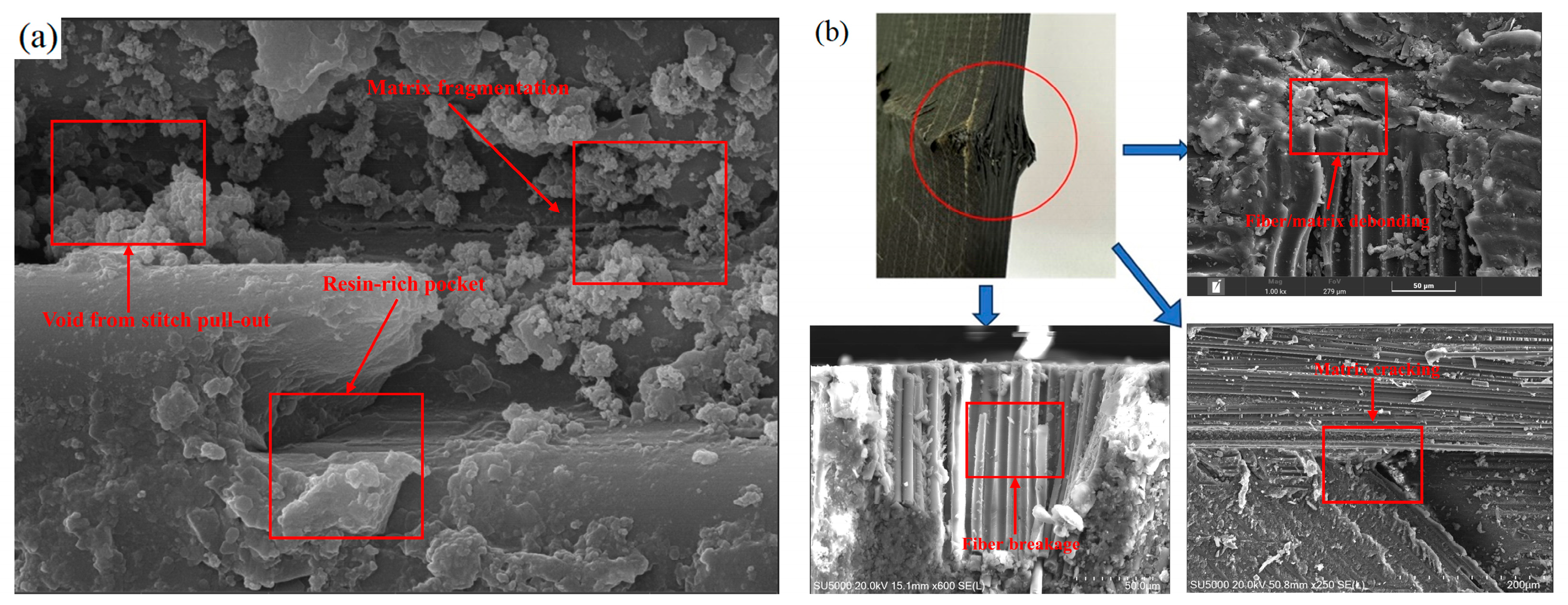 - NCF stitching/drilling defects can promote ligament damage coalescence at small spacing, so narrow ligaments should be avoided.