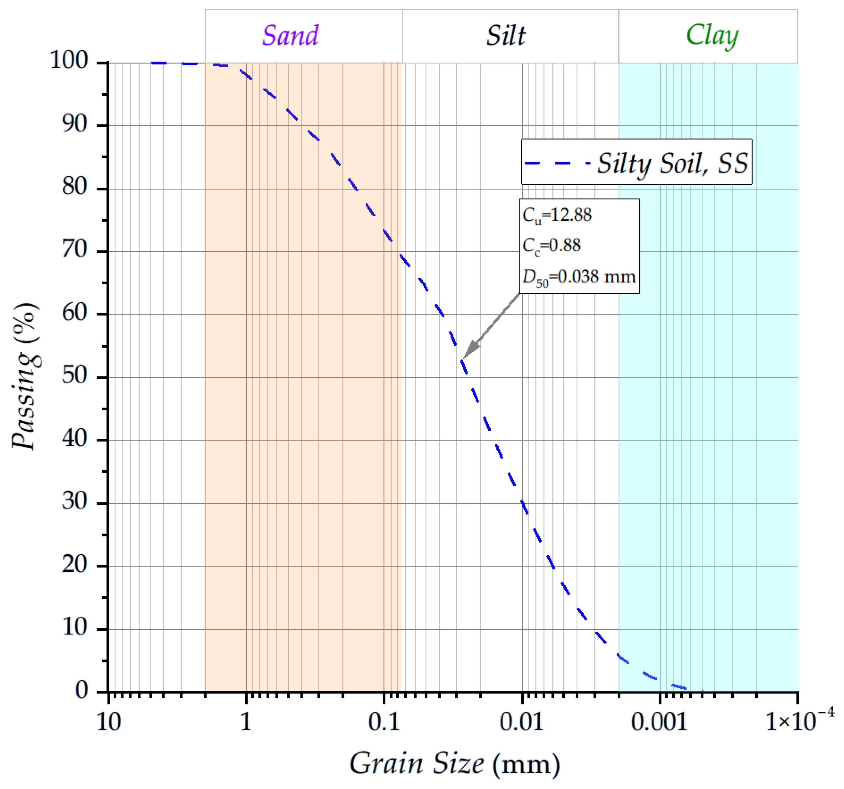 - ASTM D854; Standard Test Methods for Specific Gravity of Soil Solids by Water Pycnometer. ASTM International: West Conshohocken, PA, USA, 2014.