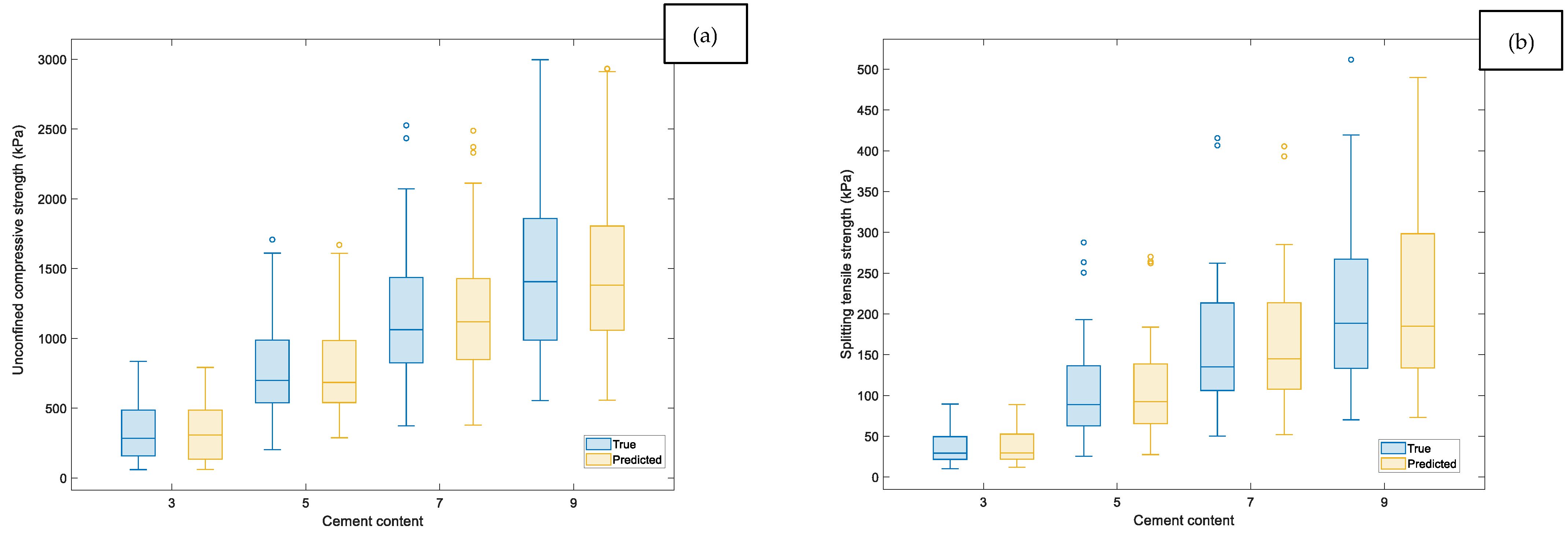 - Teodoru, I.-B.; Owusu-Yeboah, Z.; Aniculăesi, M.; Dascălu, A.V.; Hörtkorn, F.; Amelio, A.; Lungu, I. Prediction of Unconfined Compressive Strength in Cement-Treated Soils: A Machine Learning Approach. Appl. Sci. 2025, 15, 7022. [Google Scholar] [CrossRef]