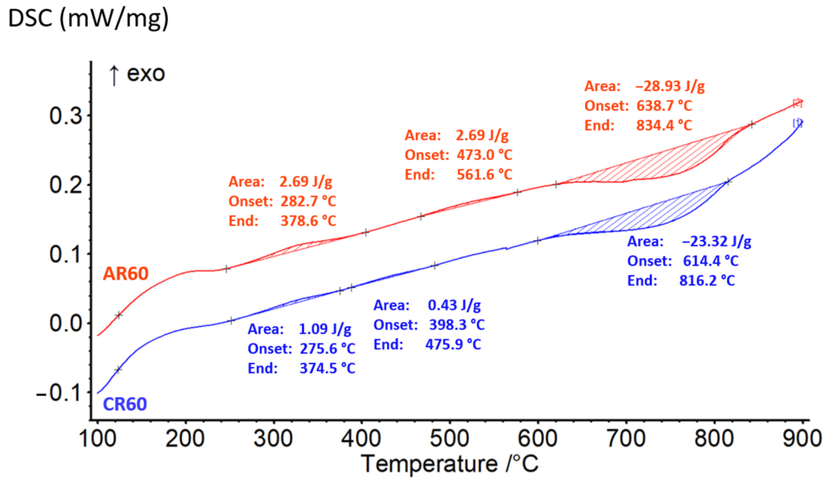 | Samples | AR60-600 | AR60-800 | CR60-600 | CR60-800 |