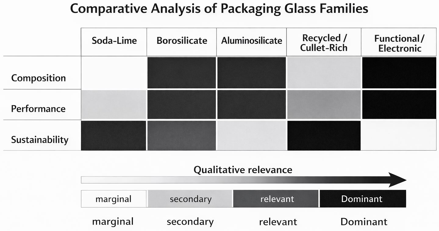 - Alkaline-earth aluminosilicates—used in displays, optical sealing, and functional/electronic packaging requiring low CTE; not used in direct-contact pharma packaging [60].