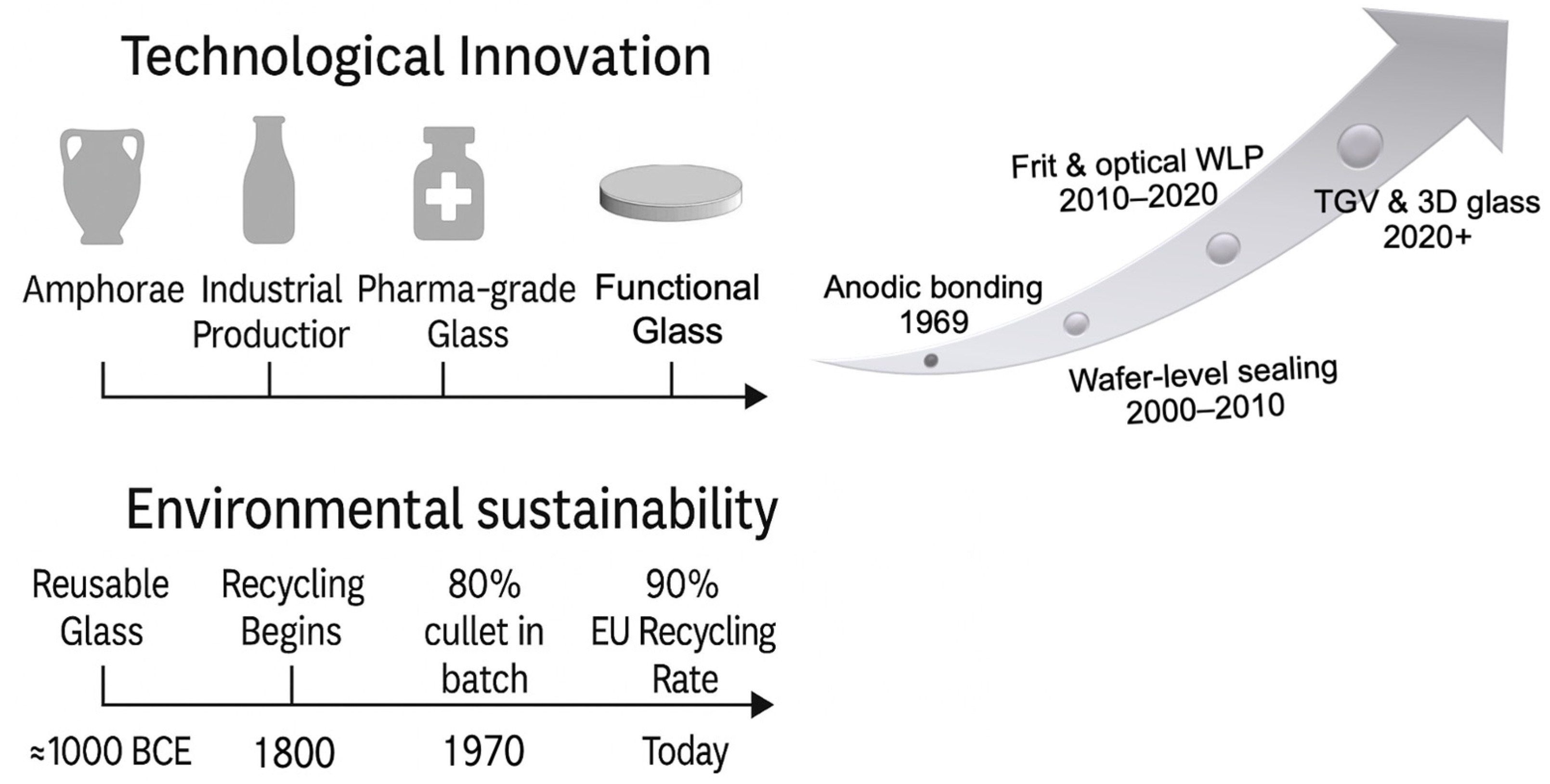 - Systematic overview of technological innovations in packaging glass, including ion exchange, ALD coatings, and lightweight forming.