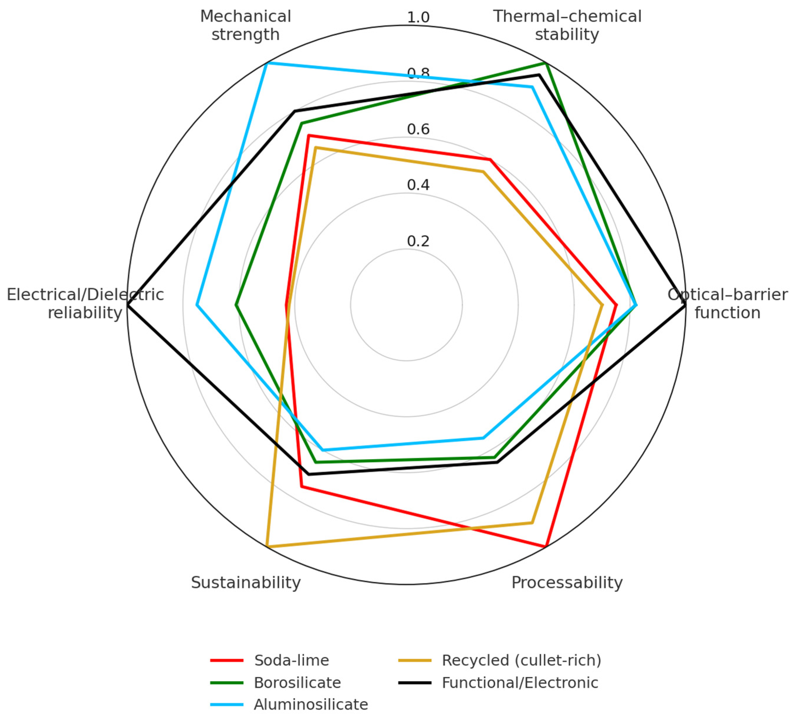 2.5. Functional, Electronic, and Specialized Packaging Glasses