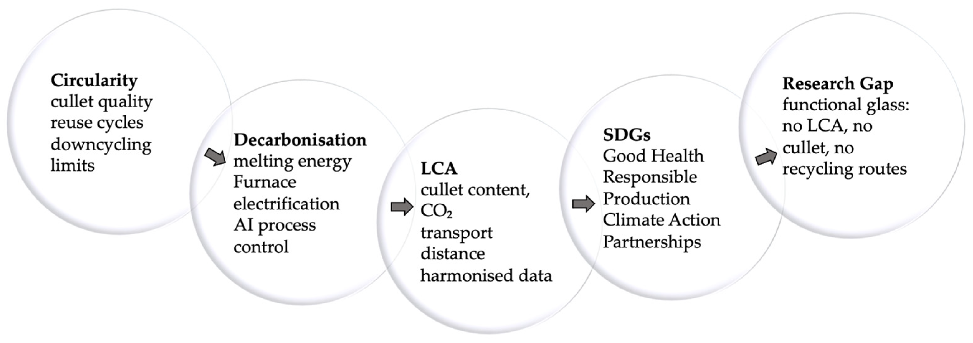 - Quantitative comparison of circularity indicators, including cullet content, energy demand, CO2 footprint, and regulatory compliance.