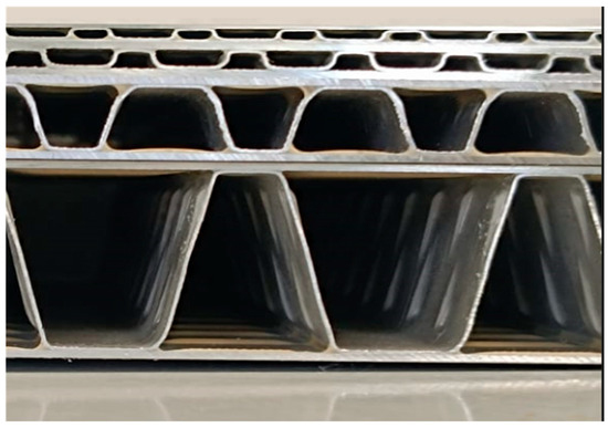 Finally, fabrication techniques are evolving. Fully metallic structures with complex corrugated cores (e.g., V- or X-shaped geometries) are now produced via Wire Arc–Directed Energy Deposition (WA-DED), an additive manufacturing (AM) technique that enables integrated fabrication of lightweight alloys such as Mg VW63K alloy [18]. Moreover, in line with the growing interest in sustainability, new studies have explored the feasibility of producing trapezoidal-core panels using agricultural and forestry by-products, such as crop residues and oil camellia shells [19,20].