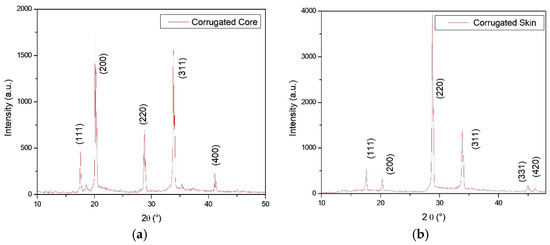 XRD spectra collected on the corrugated core (a) and the skin (b).