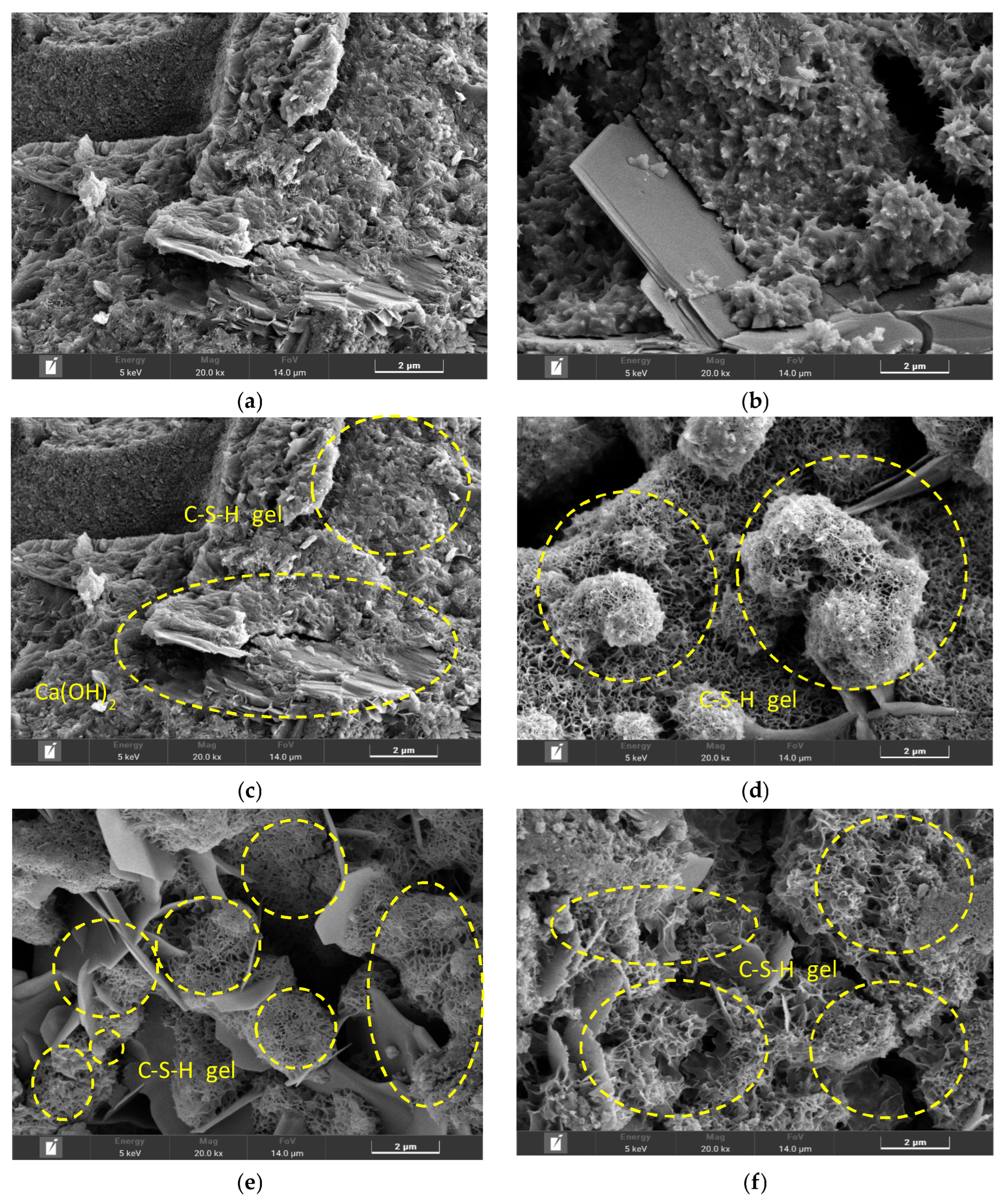 - Na, Y.K.; Moon, J.W.; Oh, T.; Yoo, D.Y. Effect of Calcium Hydroxide Addition on the Promotion of the Pozzolanic Reaction of Excess Silica Fume in Ultra-High Performance Concrete. J. Korean Soc. Hazard Mitig. 2024, 24, 223–229. [Google Scholar] [CrossRef]