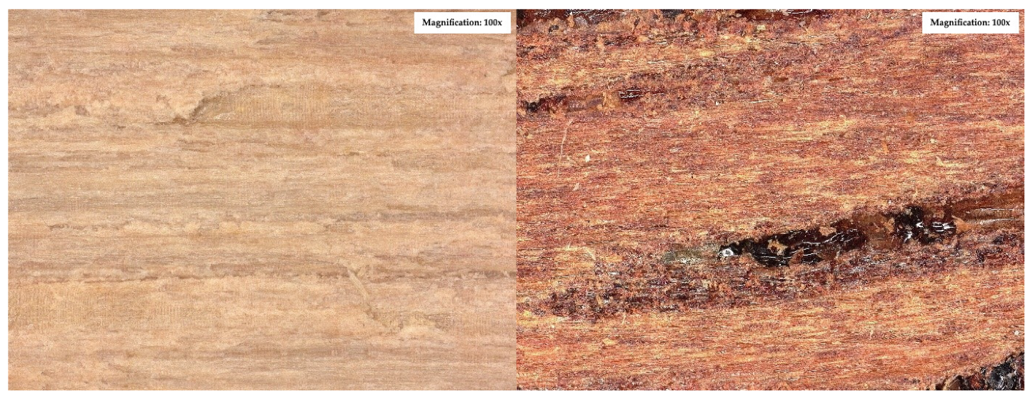 These findings underscore that surface roughness, while a key parameter, must be evaluated in conjunction with other surface characteristics—such as wettability, porosity, and extractive content—as well as adhesive properties like viscosity, curing behavior, and flexibility. The case of teak demonstrates the importance of mechanical interlocking in rough, extractive-rich species, whereas wenge highlights the adhesive’s ability to adapt and perform even in conditions of minimal physical anchoring.