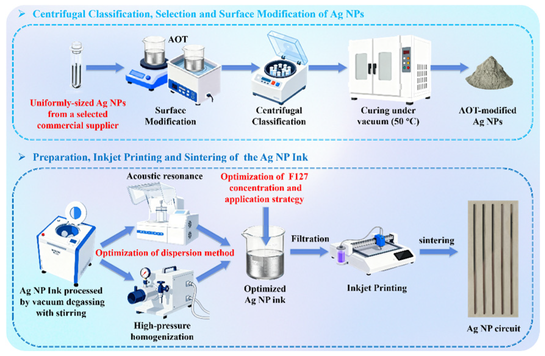 Fabrication of Highly Conductive Inkjet Printing Silver Nanoparticle Ink via a Synergistic Strategy Combining Centrifugal Classification and Dispersant Optimization
