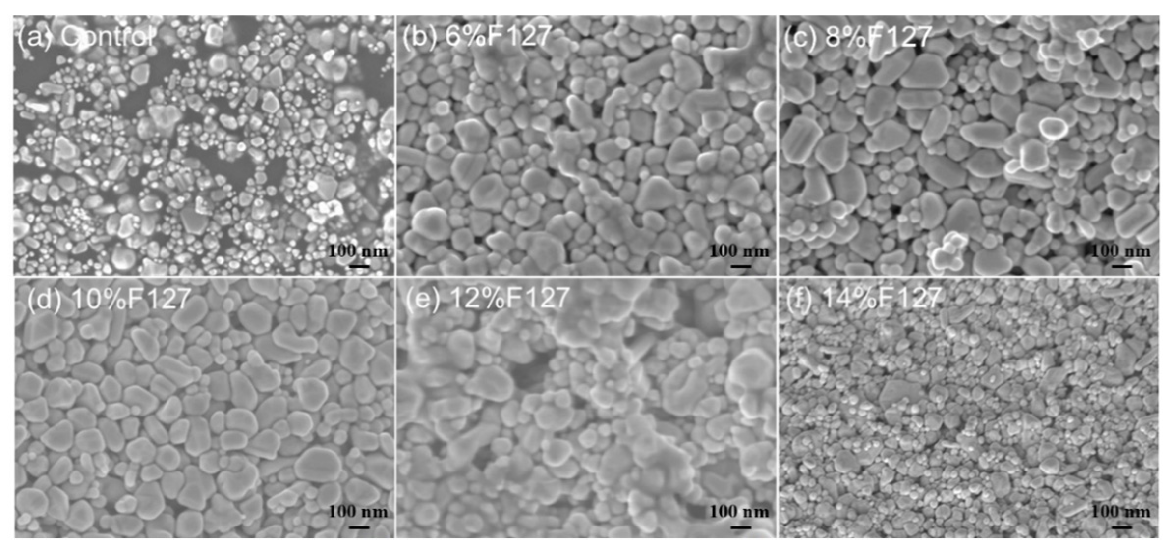 3.3. Effect of F127 Concentration on Dispersion and Rheology