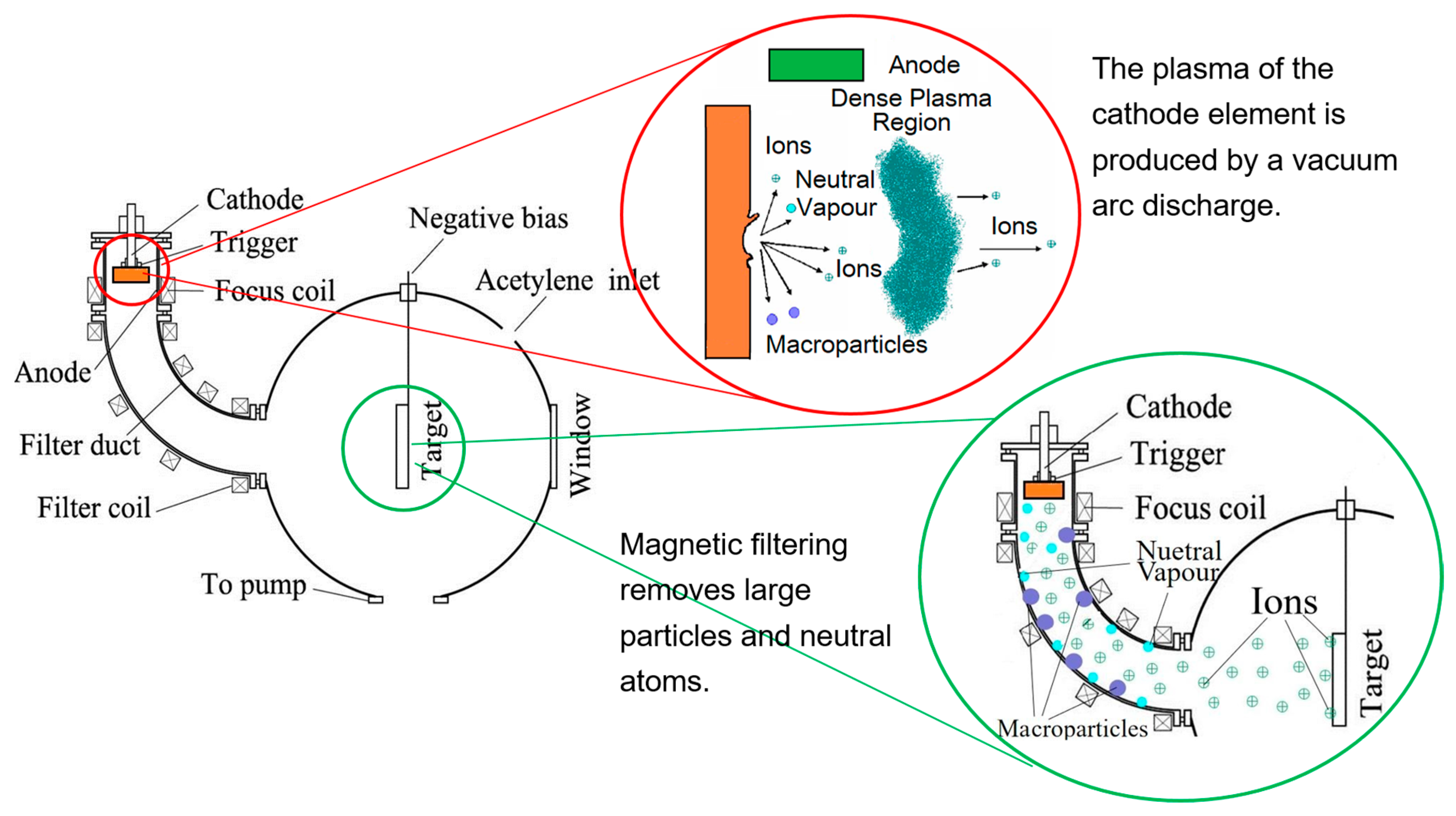 - Martin, P.; Bendavid, A. Review of the filtered vacuum arc process and materials deposition. Thin Solid Film. 2001, 1, 1–14. [Google Scholar] [CrossRef]