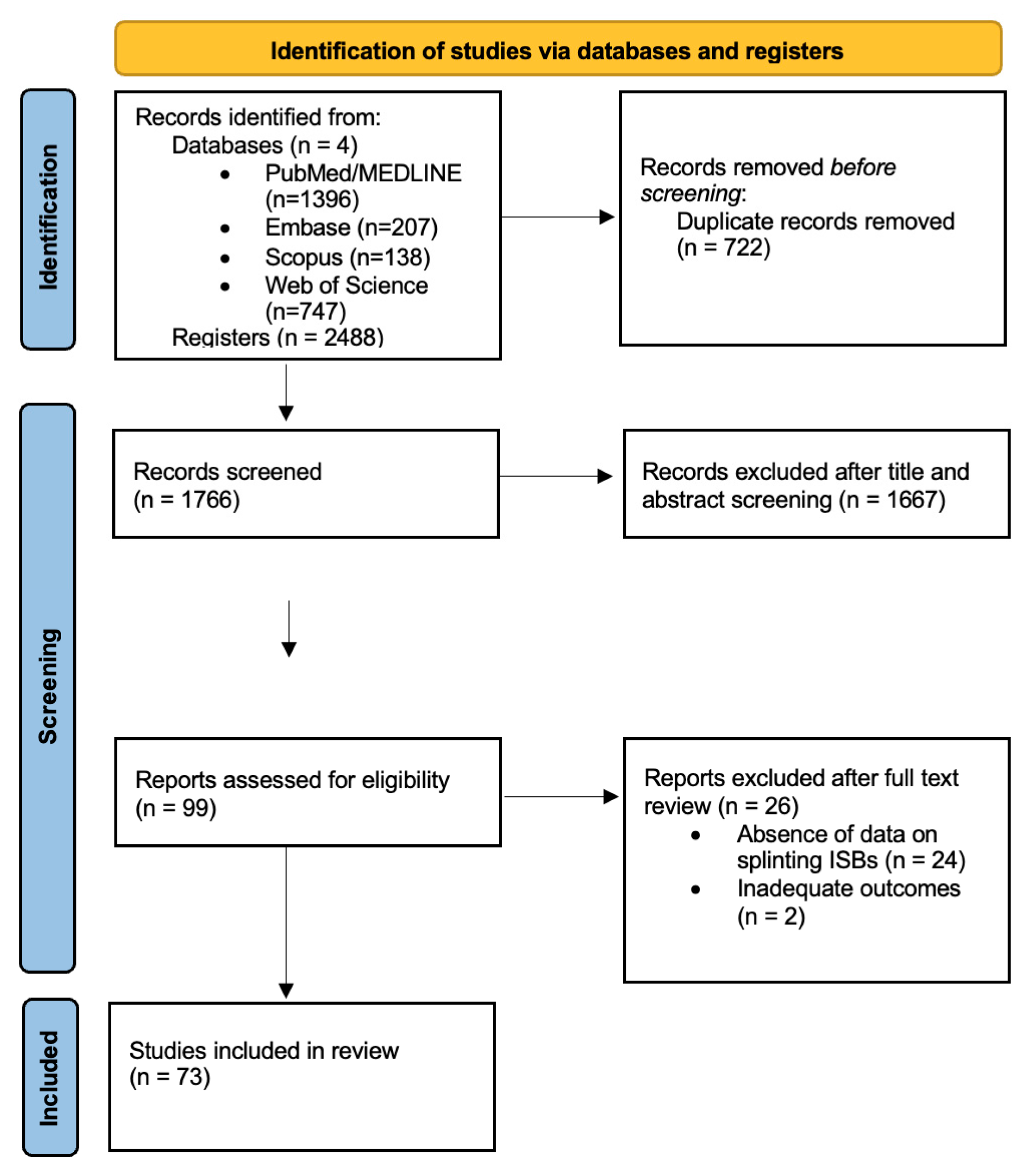 - Studies evaluating ISBs without any splinting or stabilizing method, unless serving as a control.