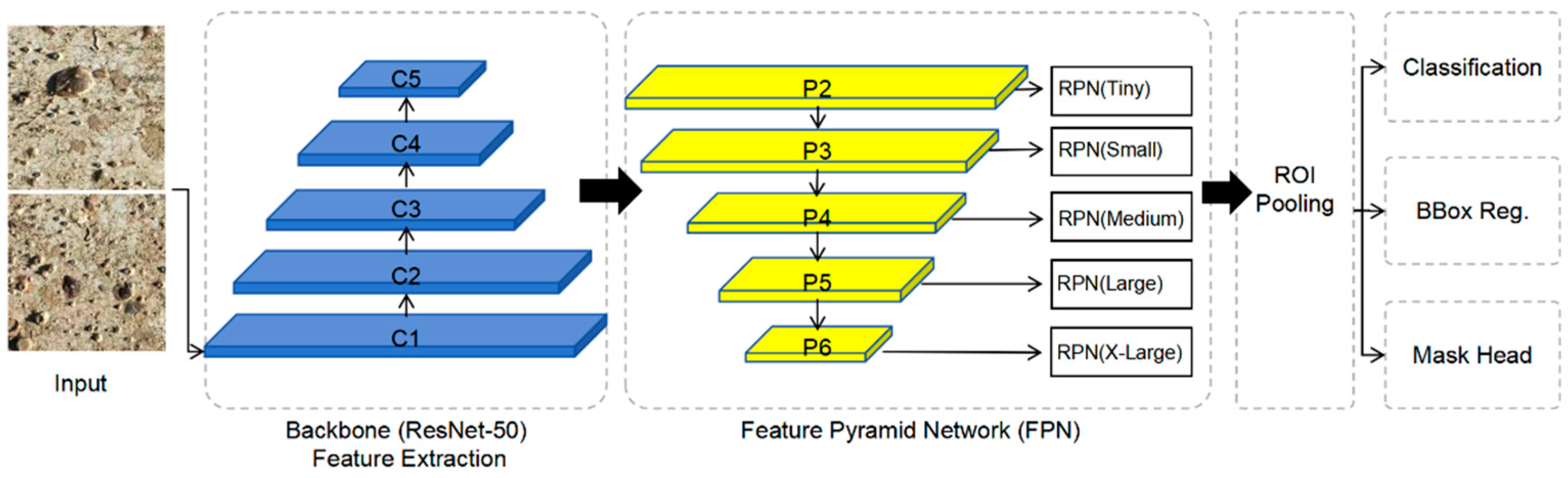- Lin, T.-Y.; Dollar, P.; Girshick, R.; He, K.; Hariharan, B.; Belongie, S. Feature Pyramid Networks for Object Detection. In Proceedings of the 2017 IEEE Conference on Computer Vision and Pattern Recognition (CVPR), Honolulu, HI, 21–26 July 2017; pp. 936–944. [Google Scholar]