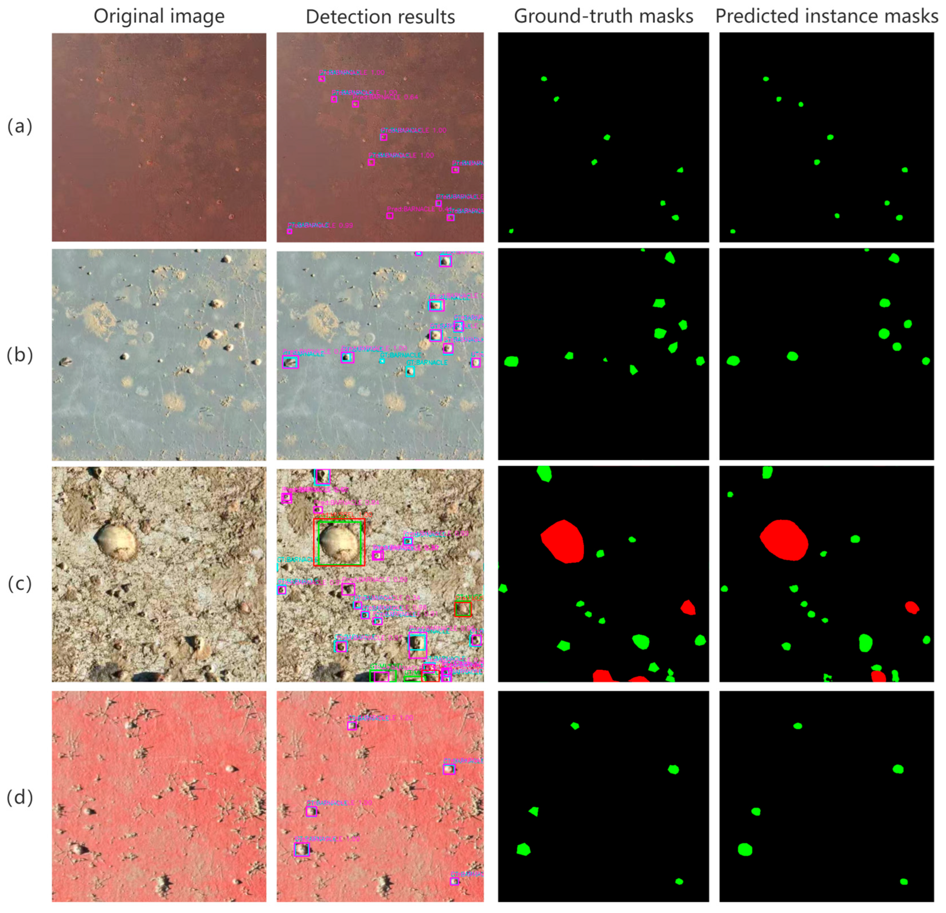 | Small-object enhancement | Gaussian noise, blurring, copy–paste of small targets | Increase the diversity of small-object samples and improve recall | Barnacles and bivalves |