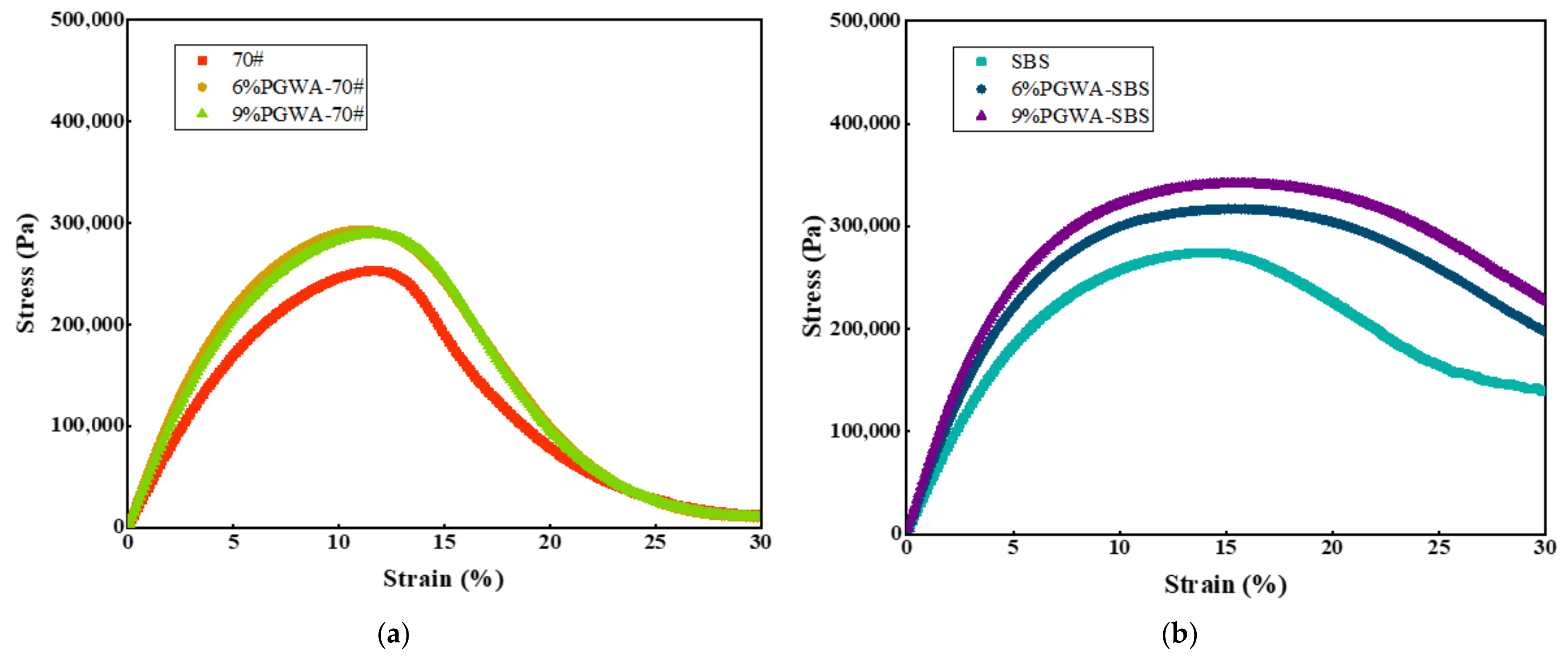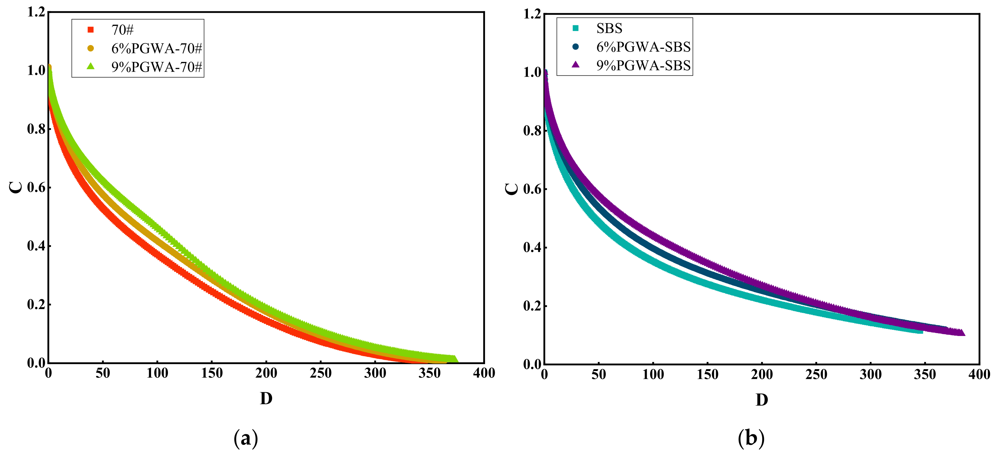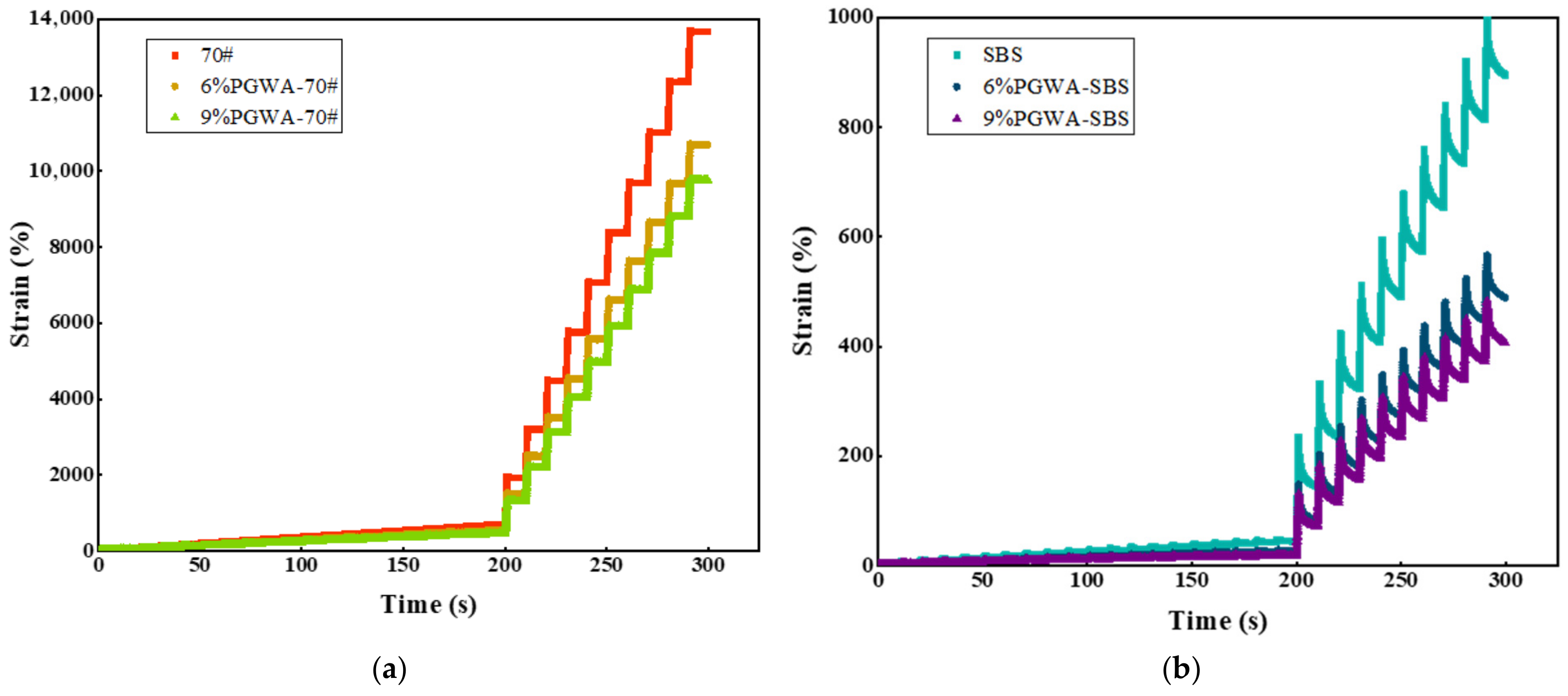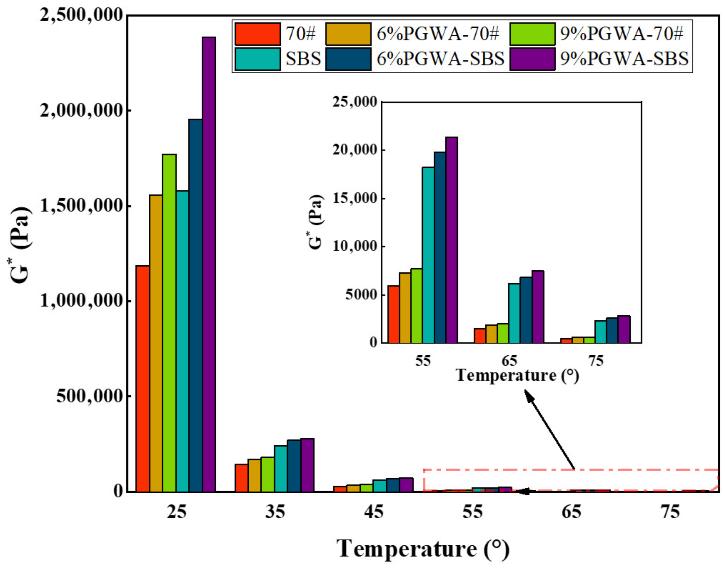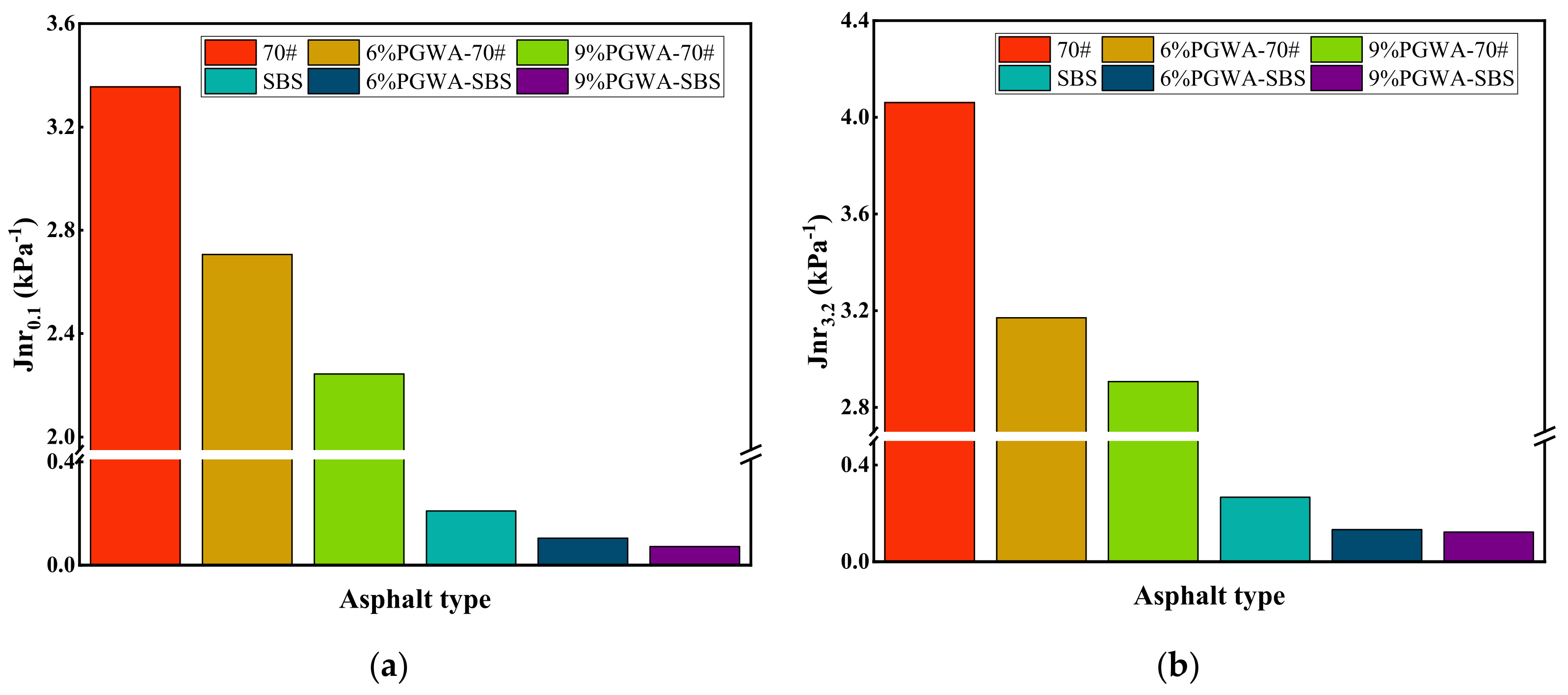 4.2. High-Temperature Performance of PGWA-Added Asphalt