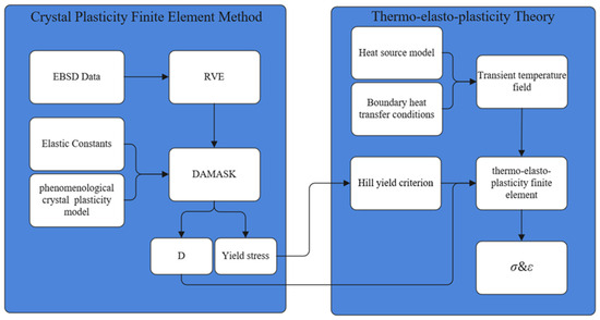 The stress simulation algorithm for EBW of TA15 material, based on the CPFEM, can be divided into two computational modules, as shown in Figure 1.