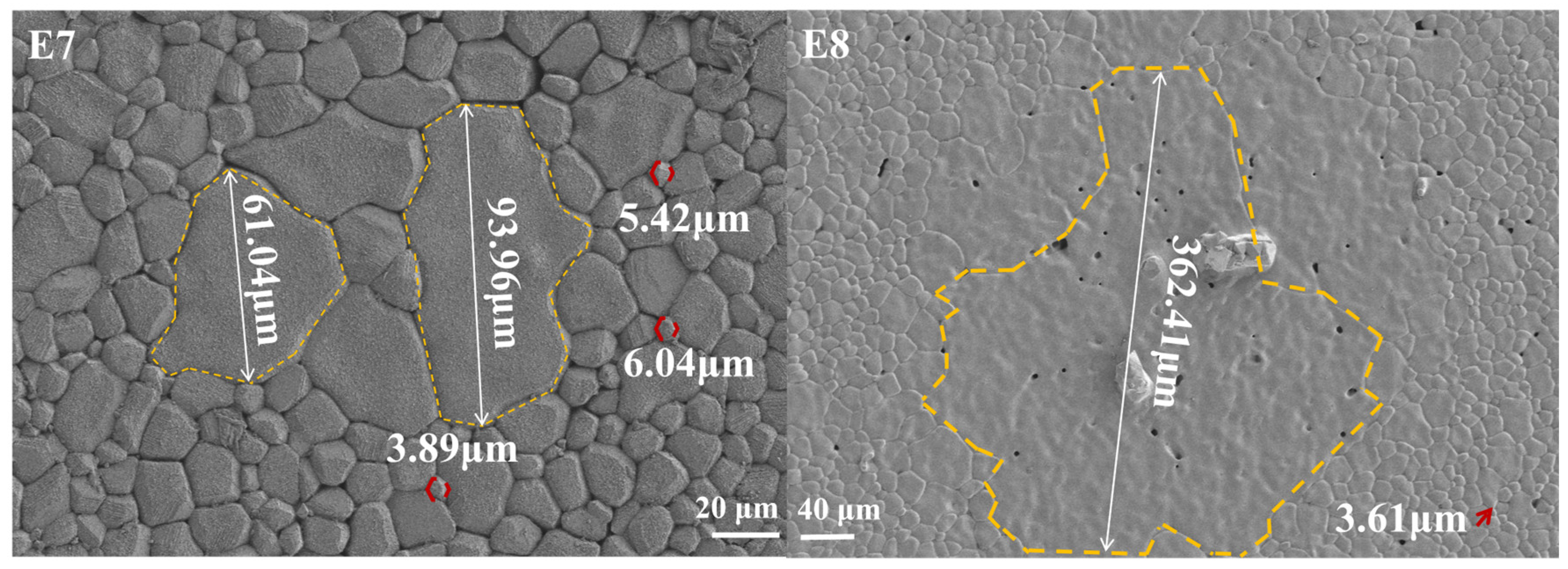 µi. However, as the sintering temperature further increased, grain coarsening occurred, leading to the formation of abnormal grains (