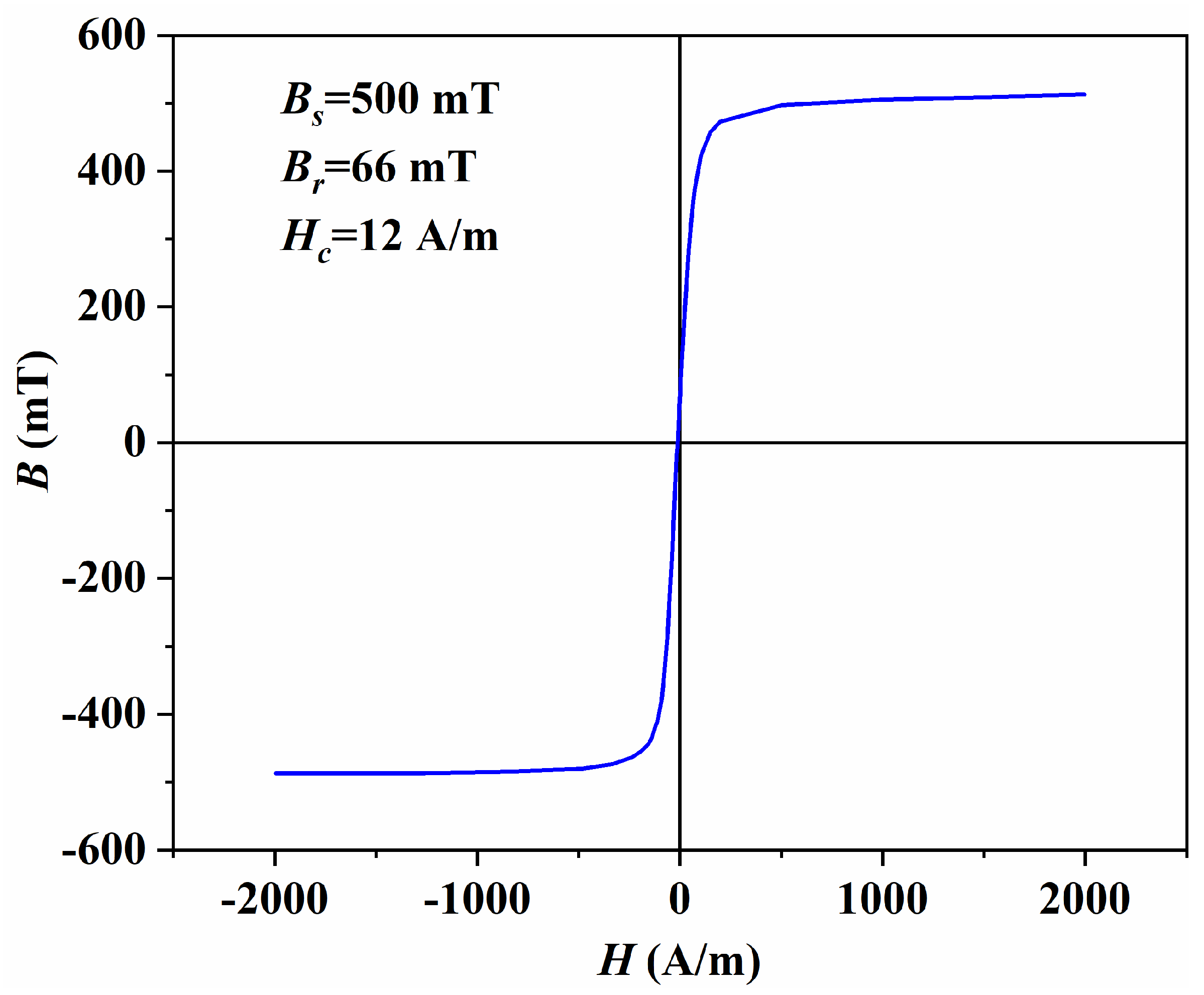Bs) of 500 mT, a remanence (