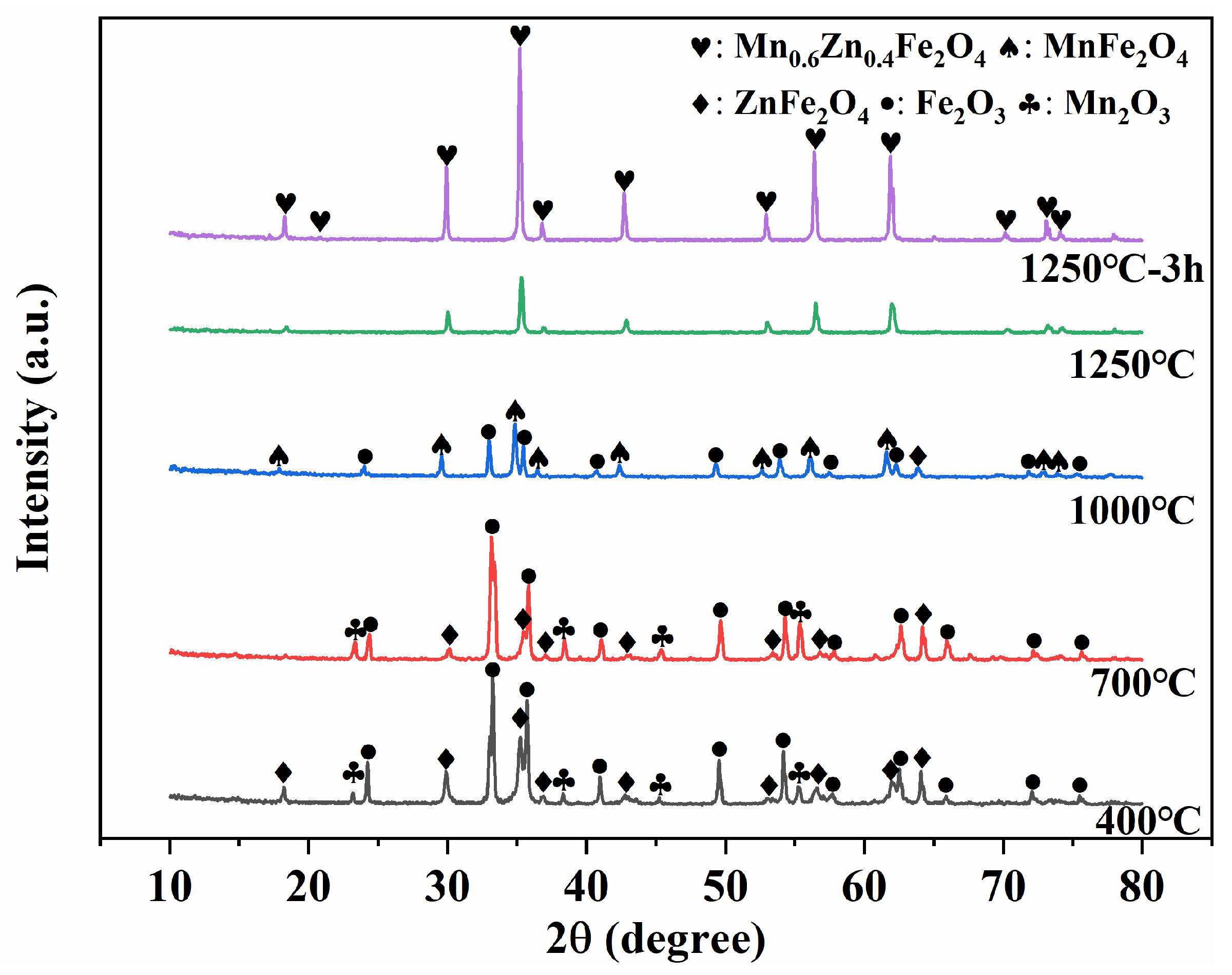 When the samples were sintered at 1250 °C, XRD analysis showed that the dominant phase evolved into Mn