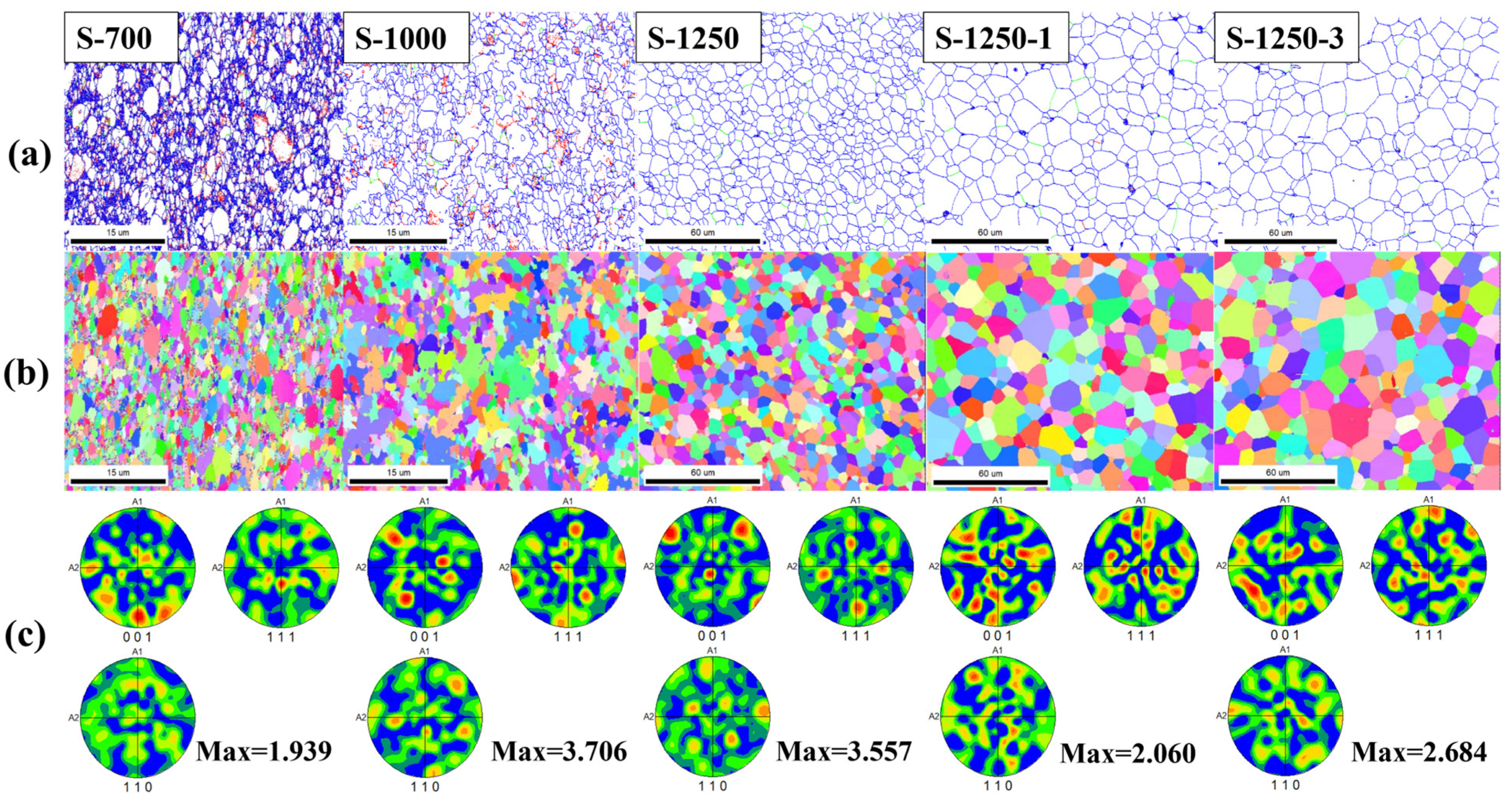 Figure 16b, where S-700 and S-1000 are finer and more fragmented, while S-1250-3 exhibits markedly coarser grains) [