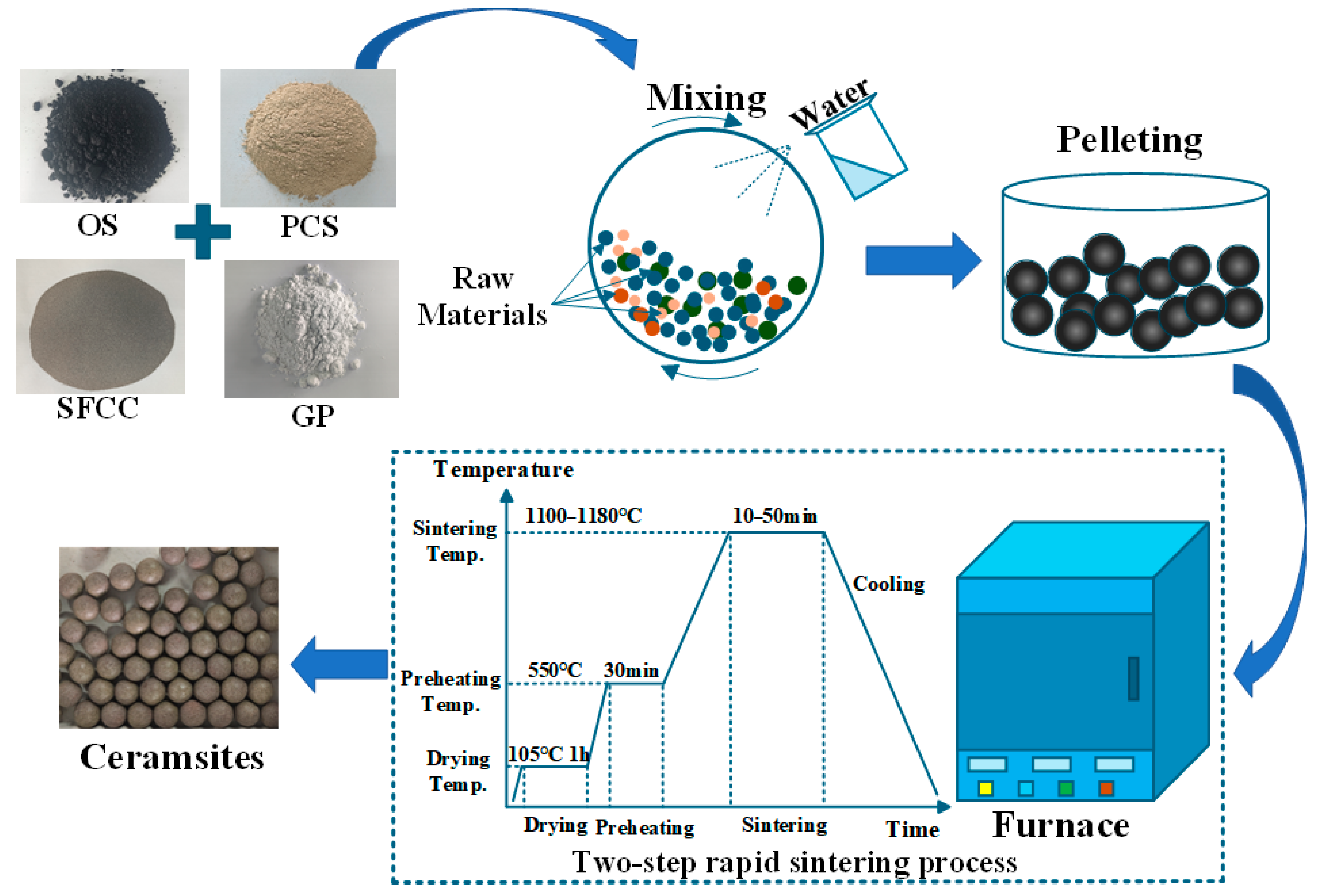 2.2. Preparation of the Ceramsite Samples
