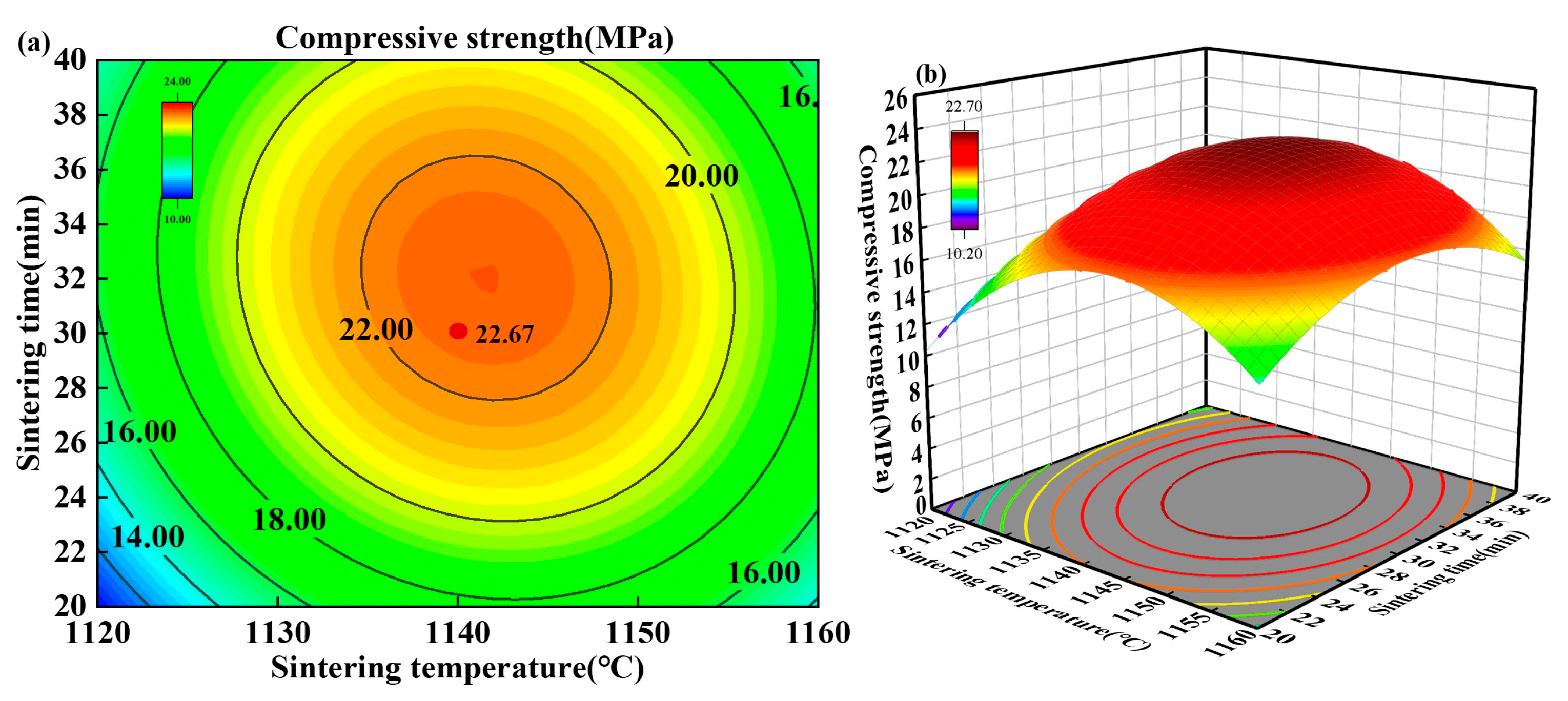 3.3. Response Surface Analysis on Strength