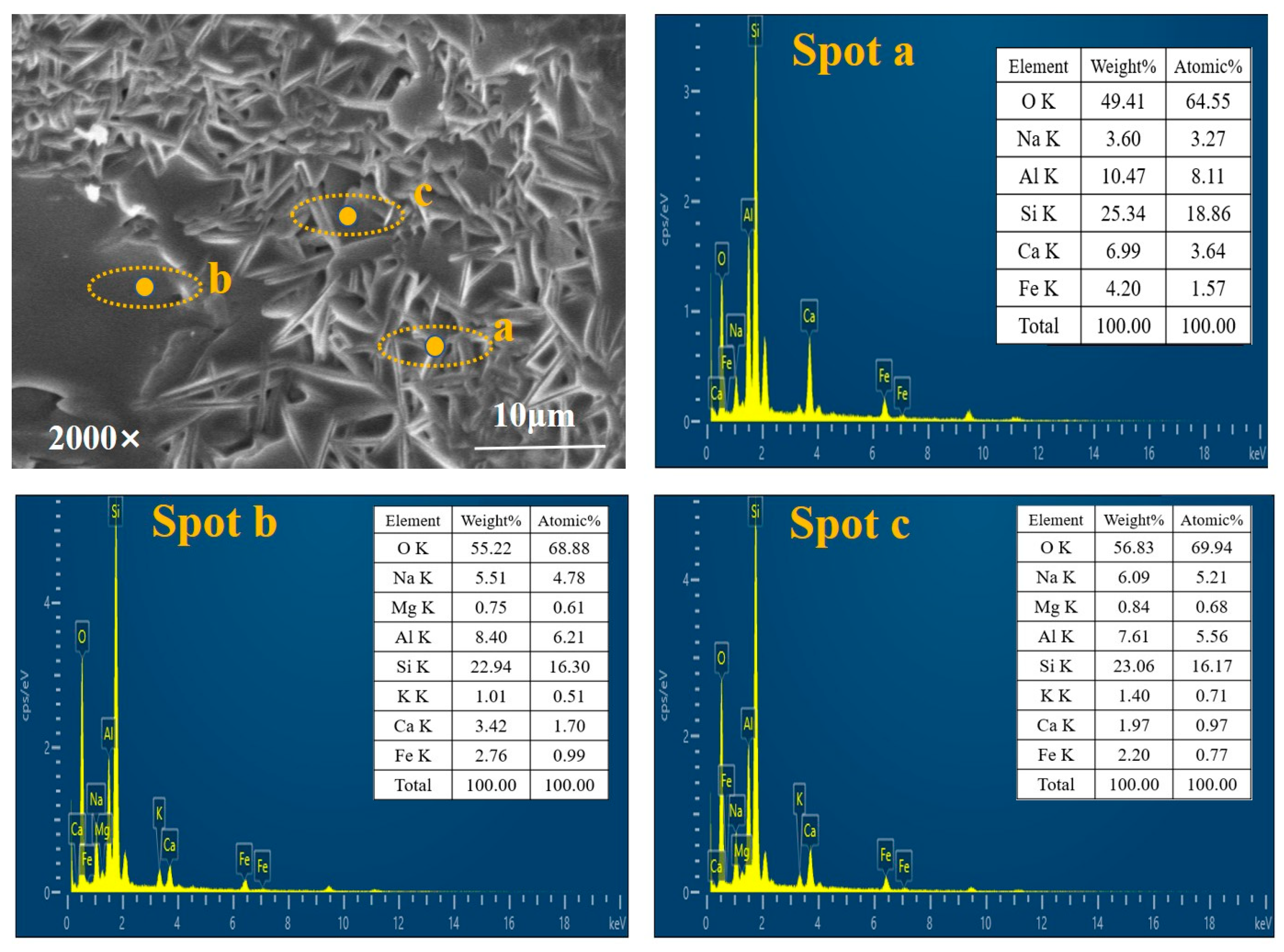 | Sample | OS (%) | PCS (%) | SFCC (%) | GP (%) | H2O (%) | SiO2 (wt.%) | Al2O3 (wt.%) |