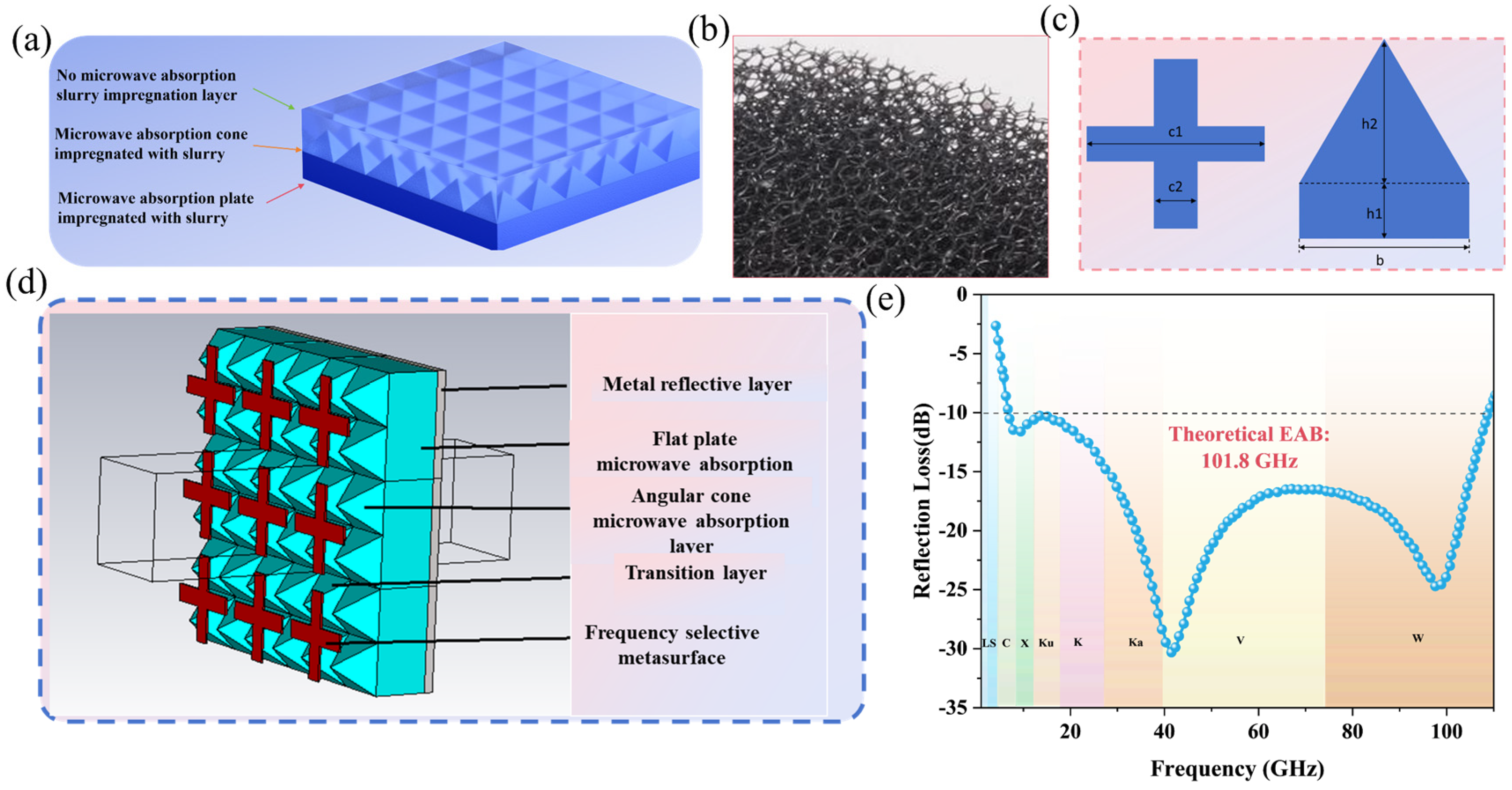 - Chen, X.; Wang, W.; Su, R.; Huang, Y.; Li, Y.; He, R. 3D-printed electromagnetic microwave absorption structures: A comprehensive review. J. Mater. Chem. A 2025, 13, 22240–22270. [Google Scholar] [CrossRef]