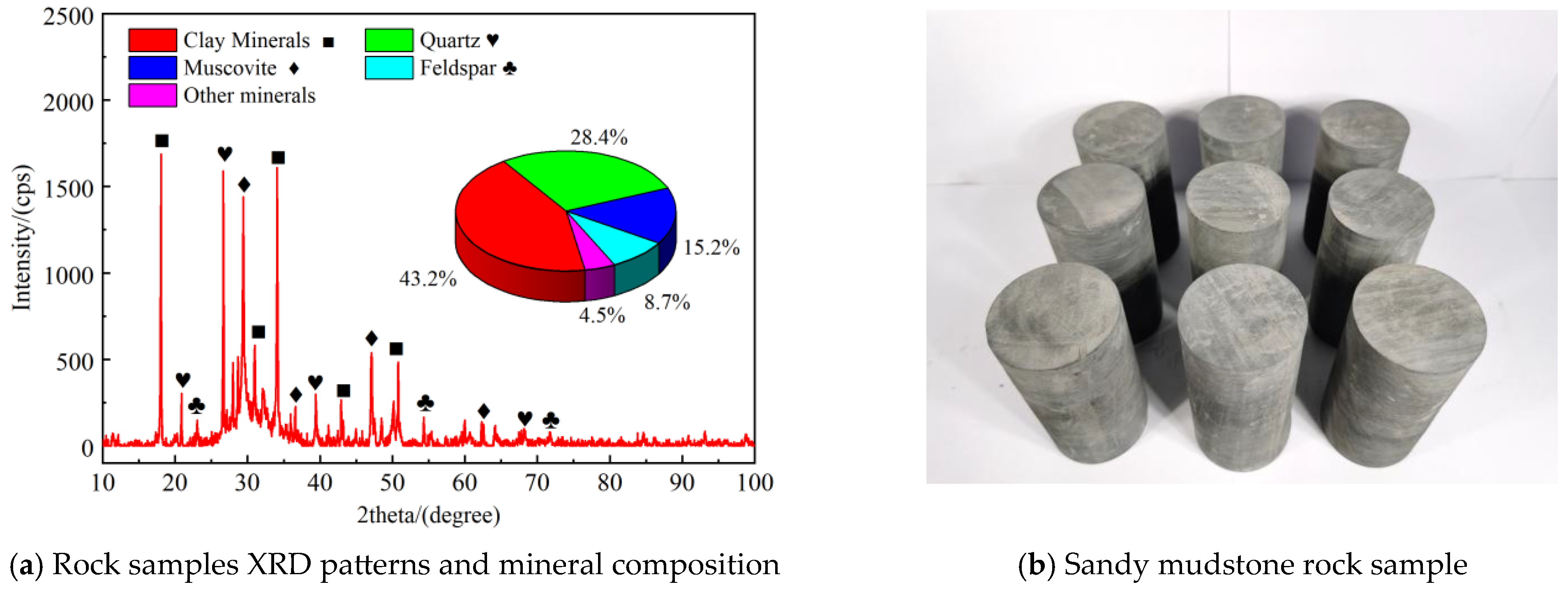 - Yu, J.; Deng, H.; He, S.; Lv, L. Effects of wet–dry cycles and acidic environments on the mechanical properties and microstructure of silty mudstone. Rock Mech. Rock Eng. 2025, 58, 7259–7285. [Google Scholar] [CrossRef]