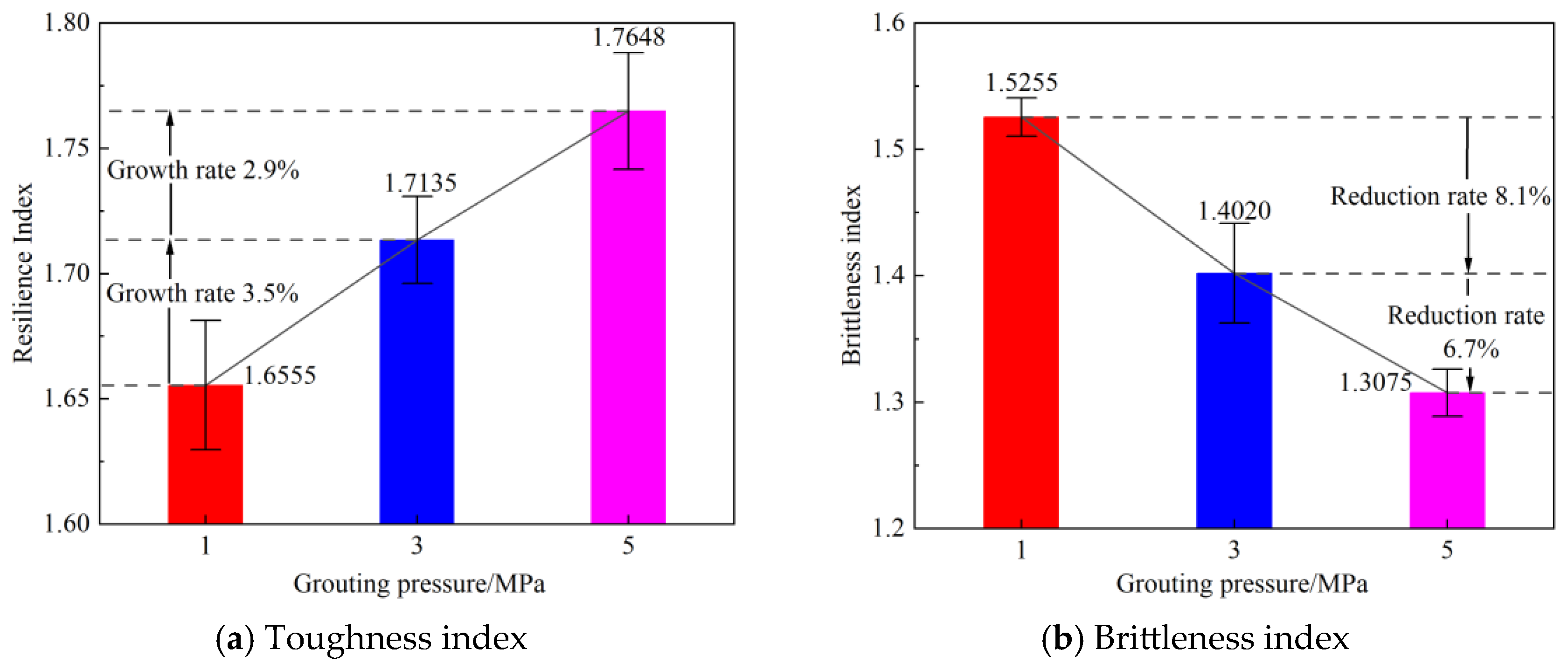 3.4. Toughness and Brittleness of Grouted Rock Samples