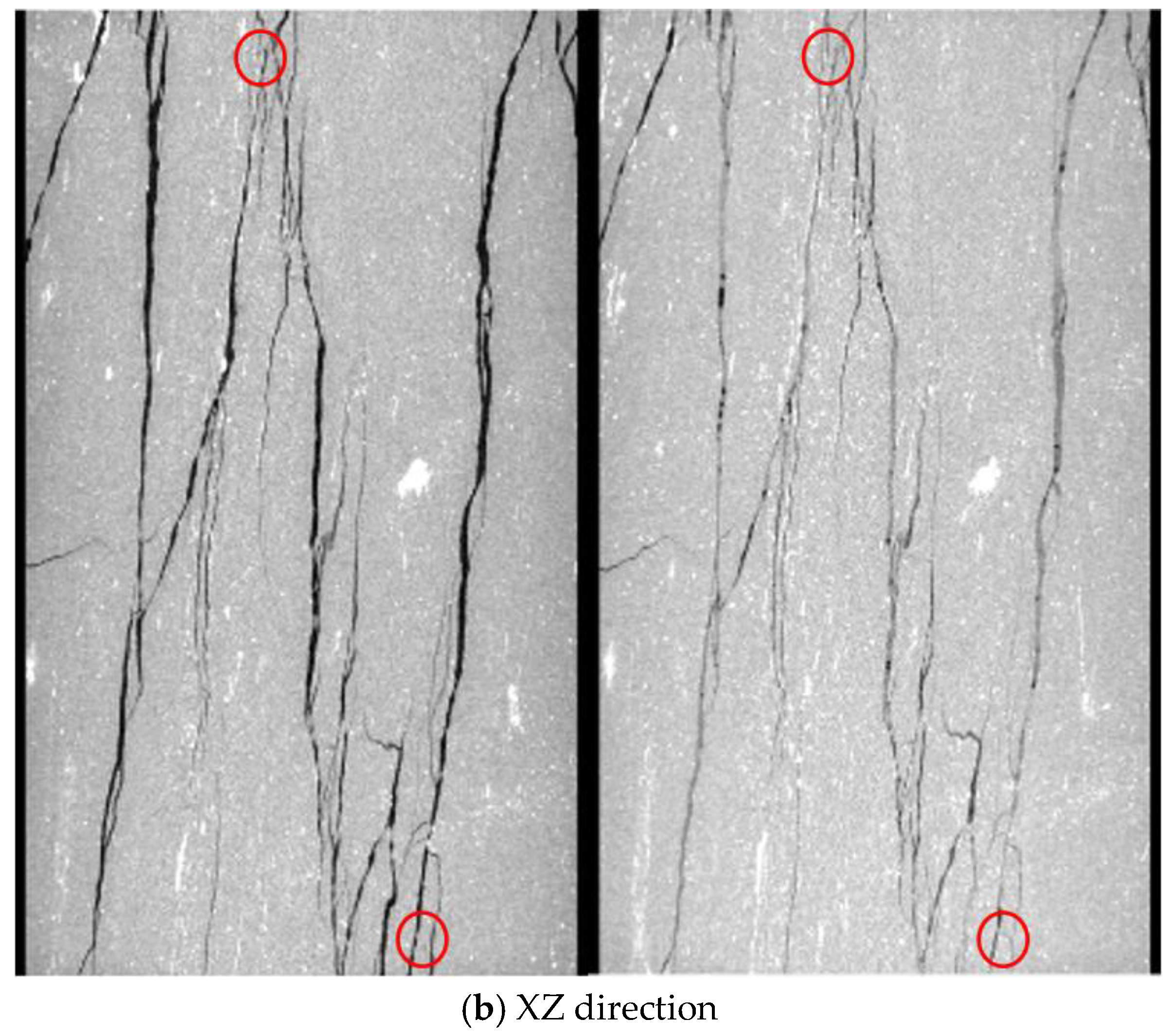 4.3. Comparison of Microstructural Features of Fractures in Grouted Rock Samples
