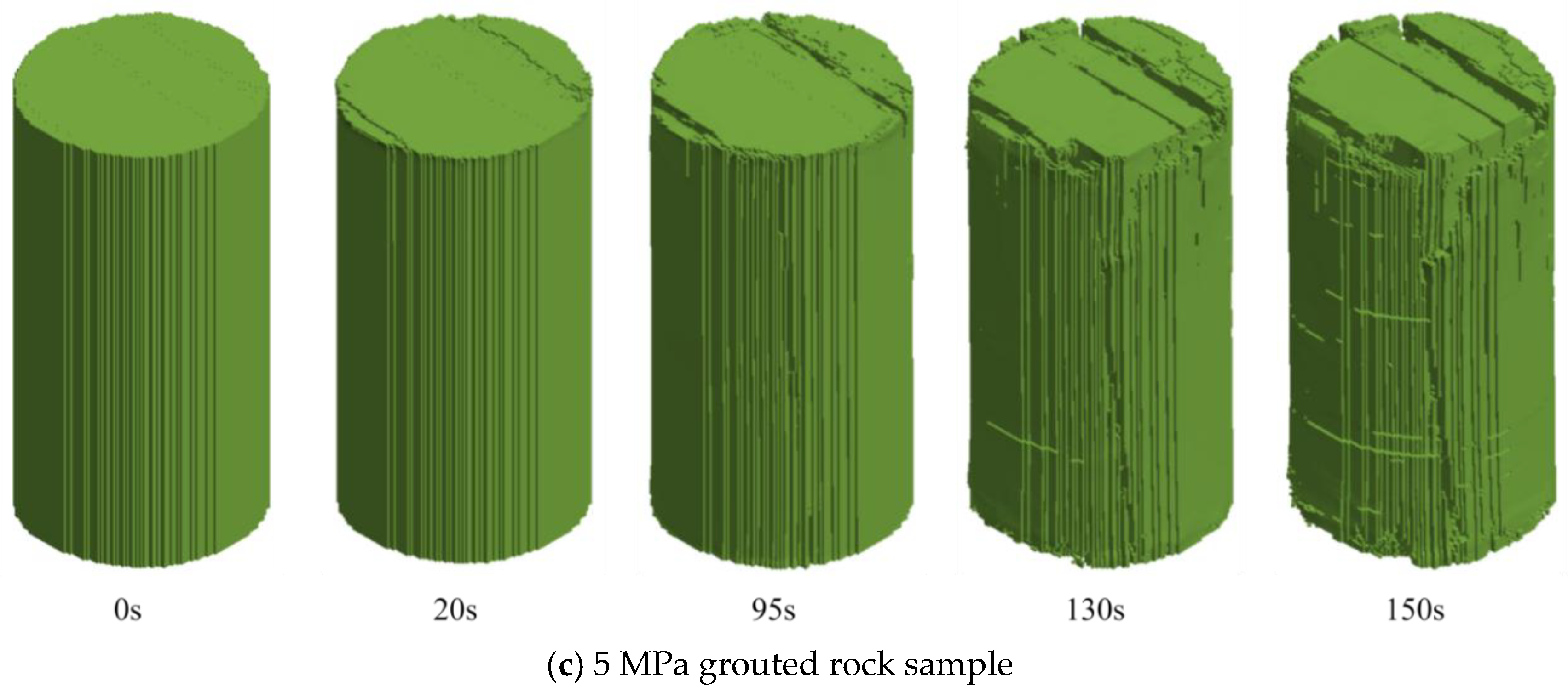5.2.3. Crack Evolution in Grouted Rock Samples