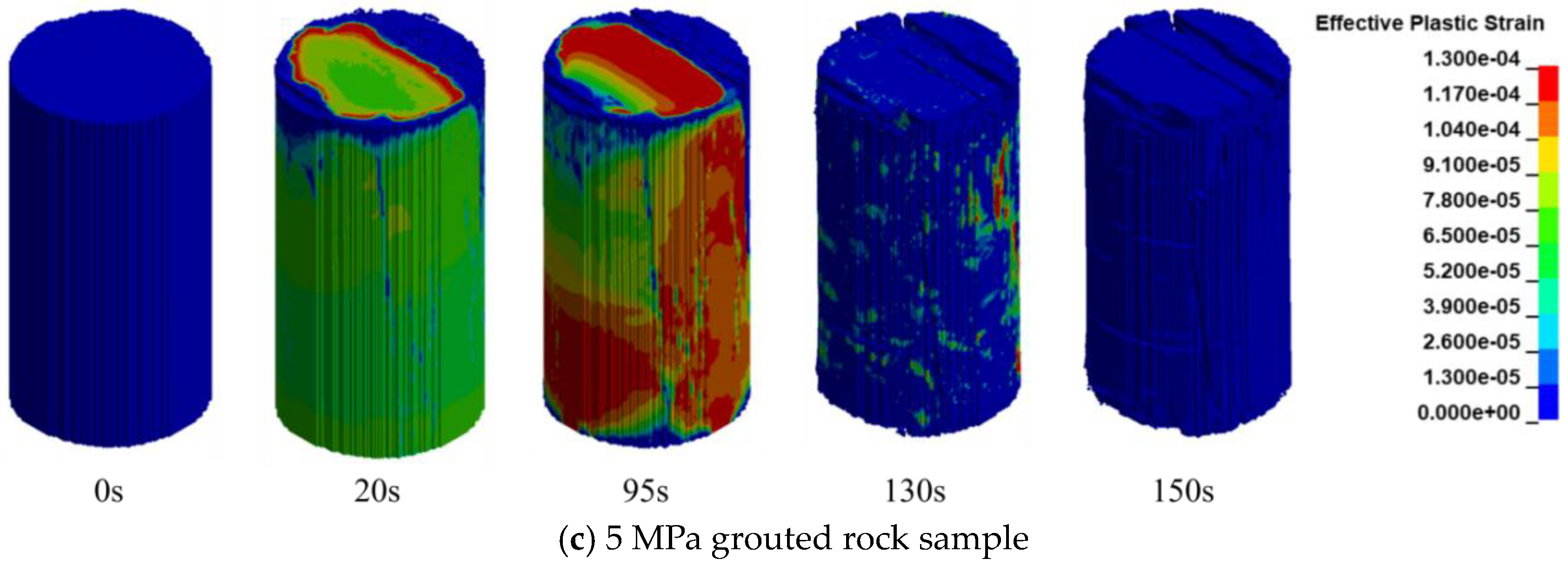 5.2. Analysis of Numerical Simulation Results for Grouted Rock Samples