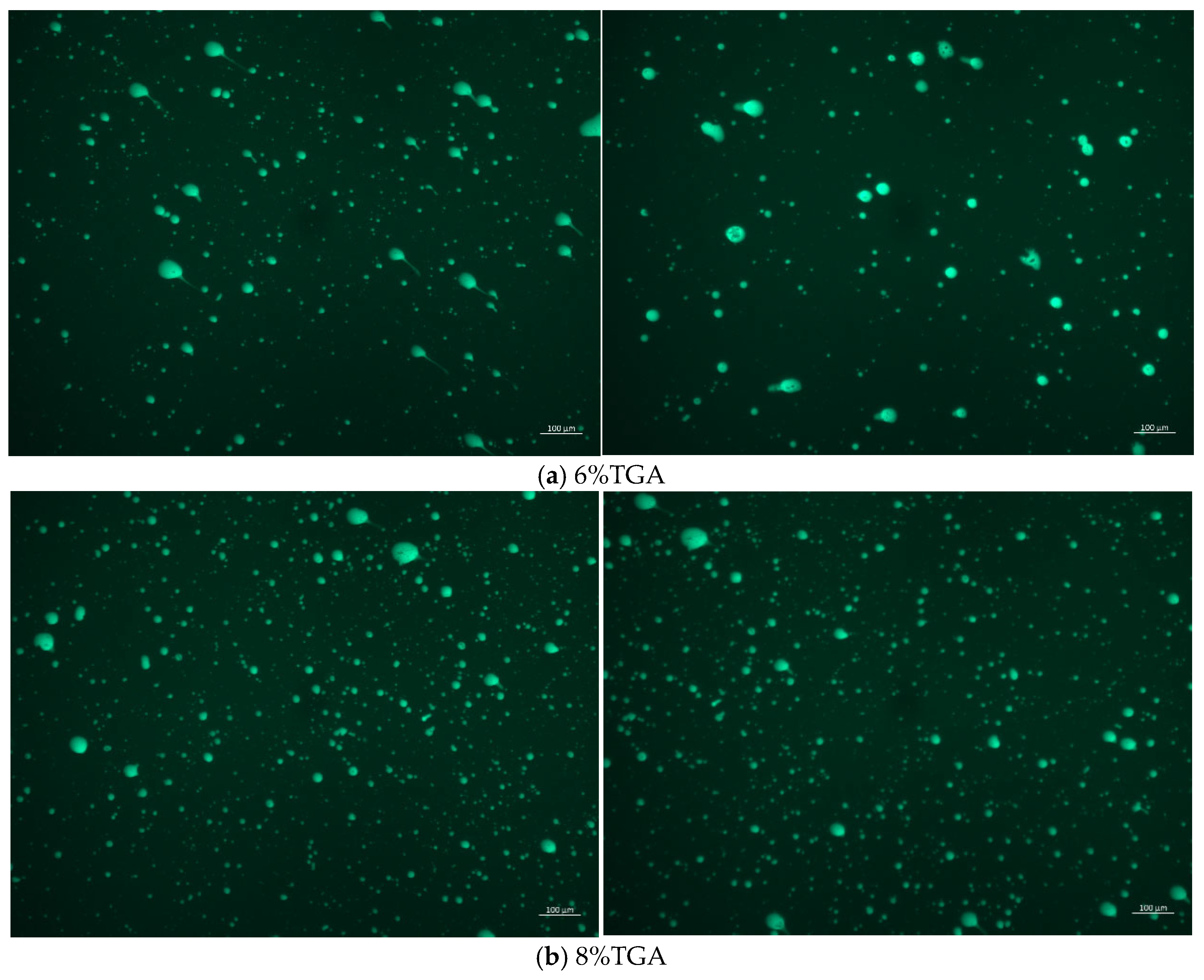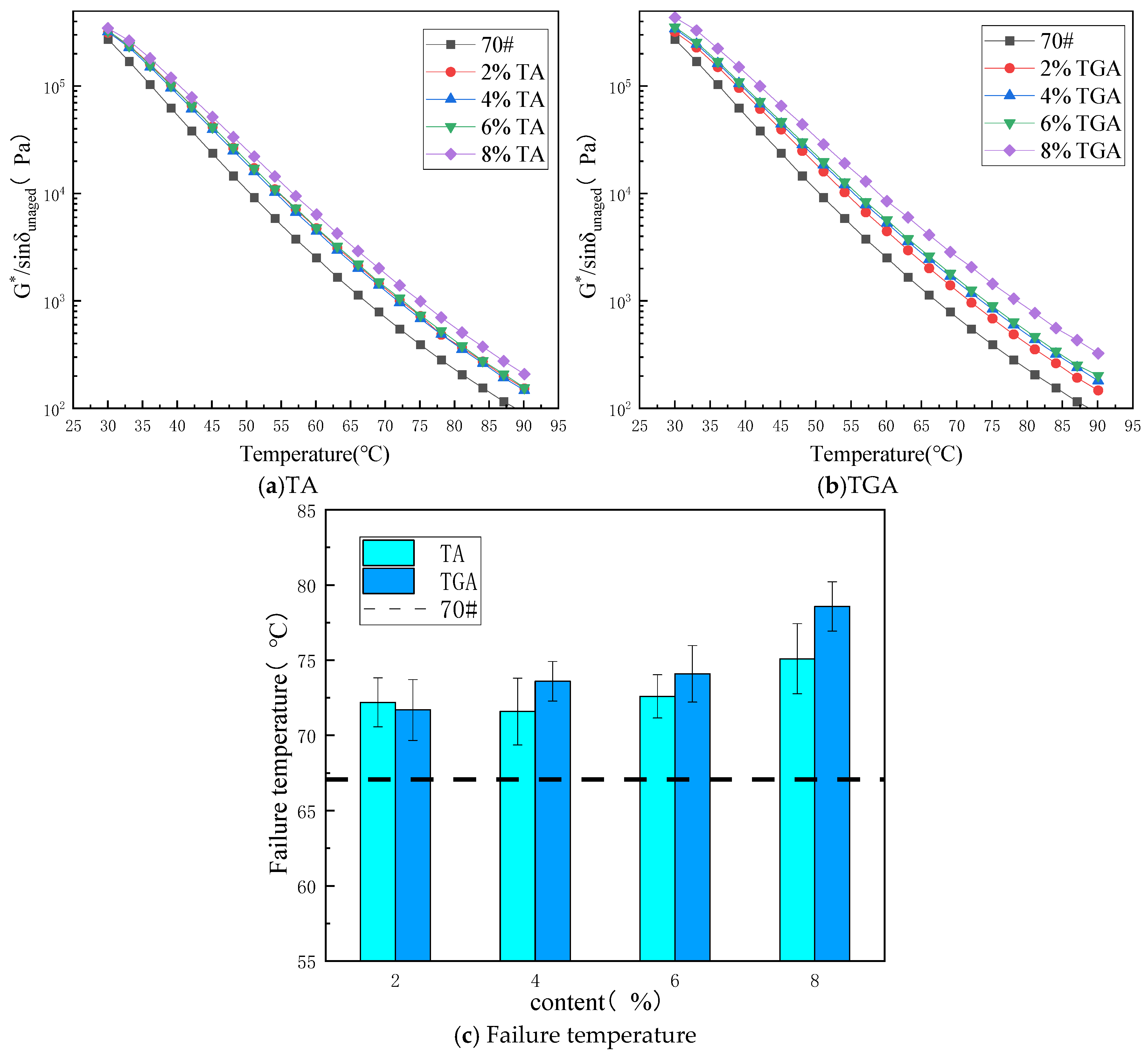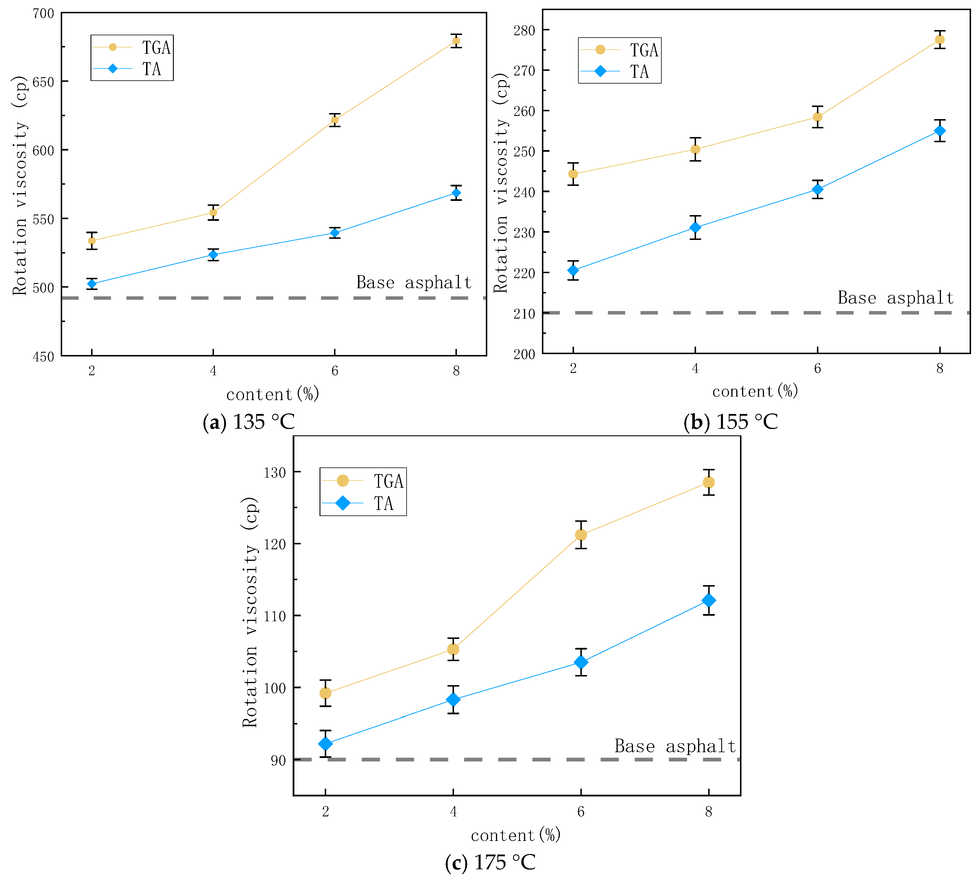 | 8%TGA | 8% TPU/GO-modified asphalt | 0 | 8% | 0.096% |