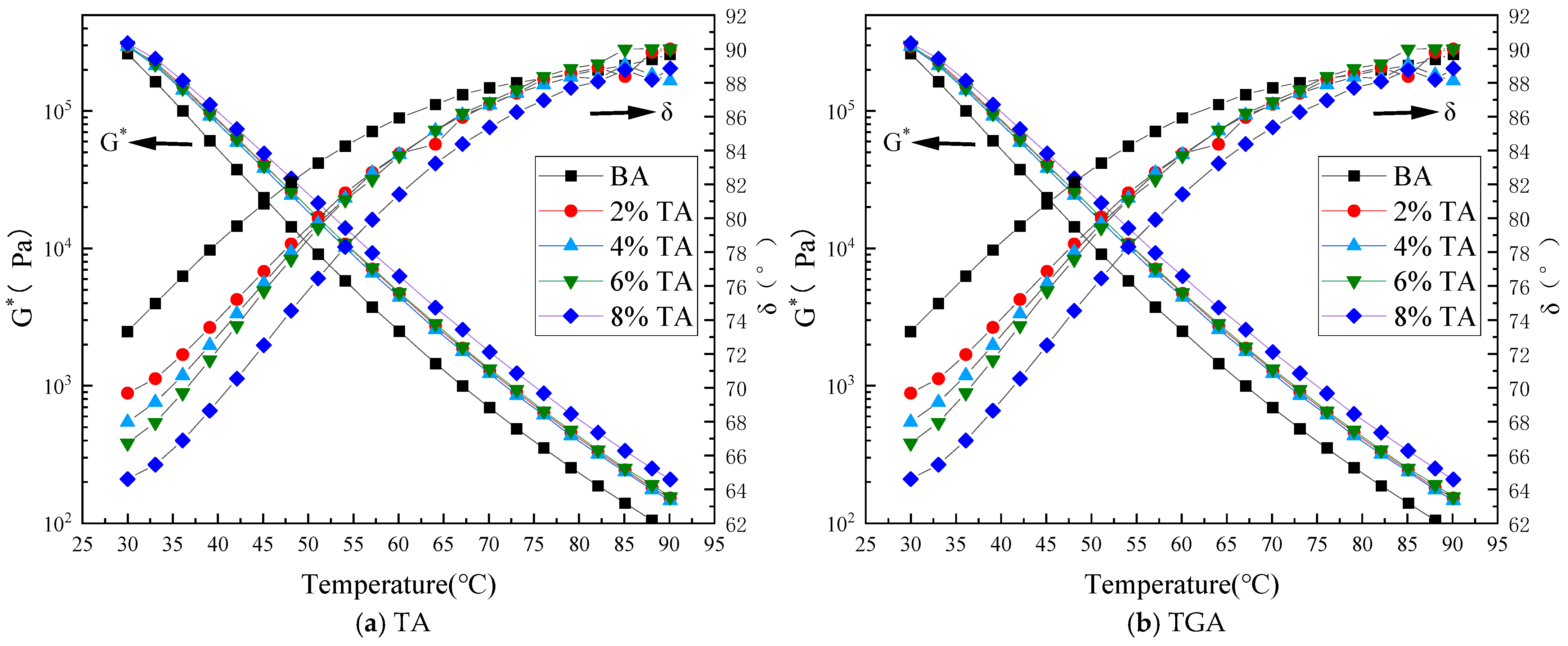 | 4%TGA | 4% TPU/GO-modified asphalt | 0 | 4% | 0.048% |