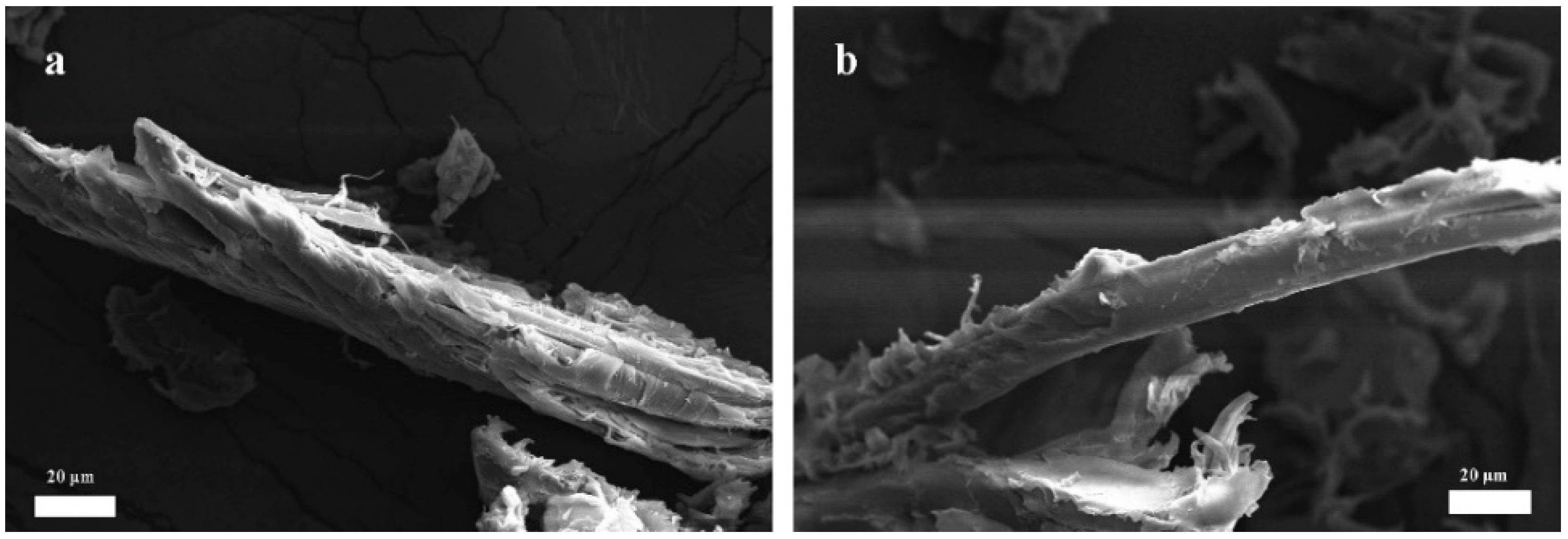 - Geremew, A.; Winne, D.; Demissie, P.; Backer, H.D. Surface modification of bamboo fibers through alkaline treatment: Morphological and physical characterization for composite reinforcement. J. Eng. Fiber. Fabr. 2024, 19, 15589. [Google Scholar] [CrossRef]