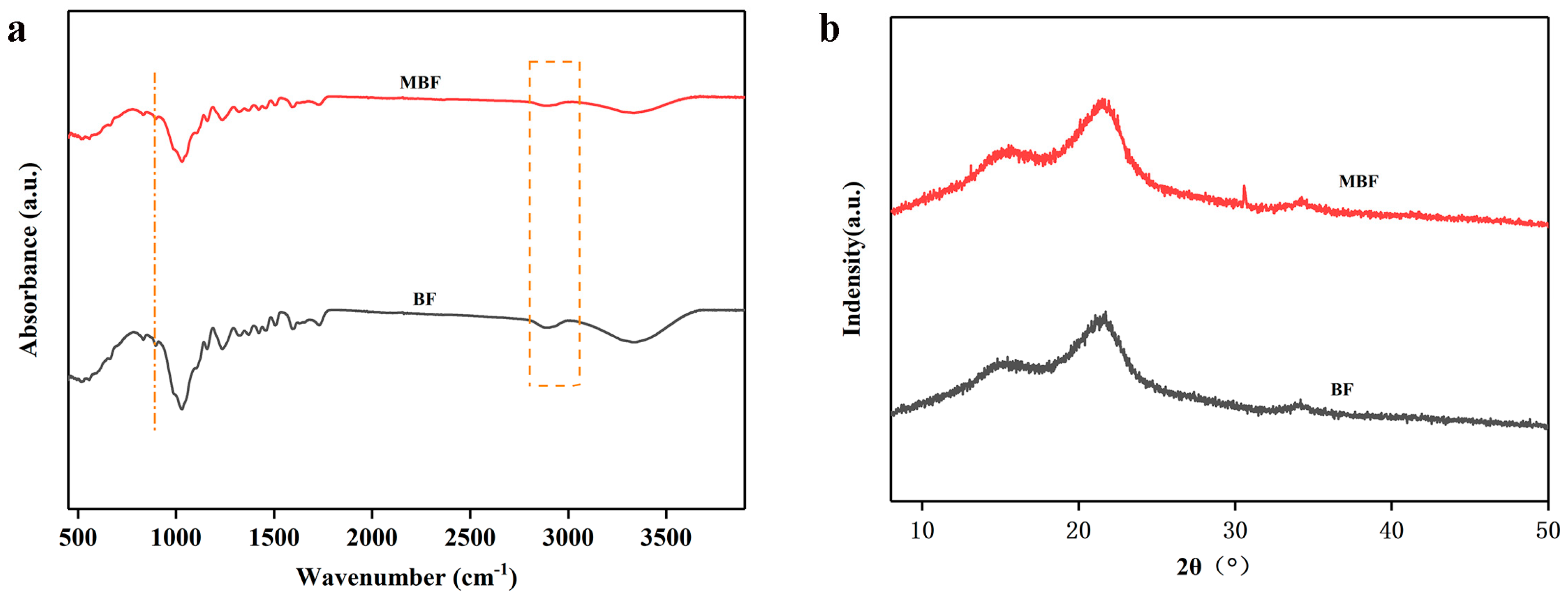 3.2. Structural Analysis of BF and MBF