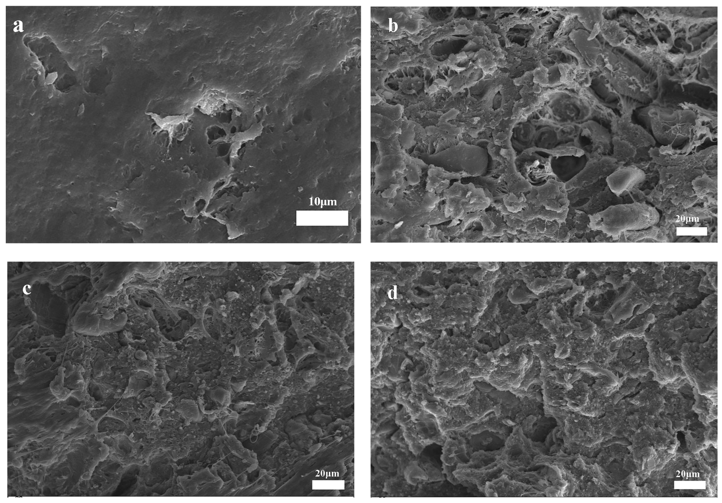 3.4. SEM of PLA/PBAT and Composites