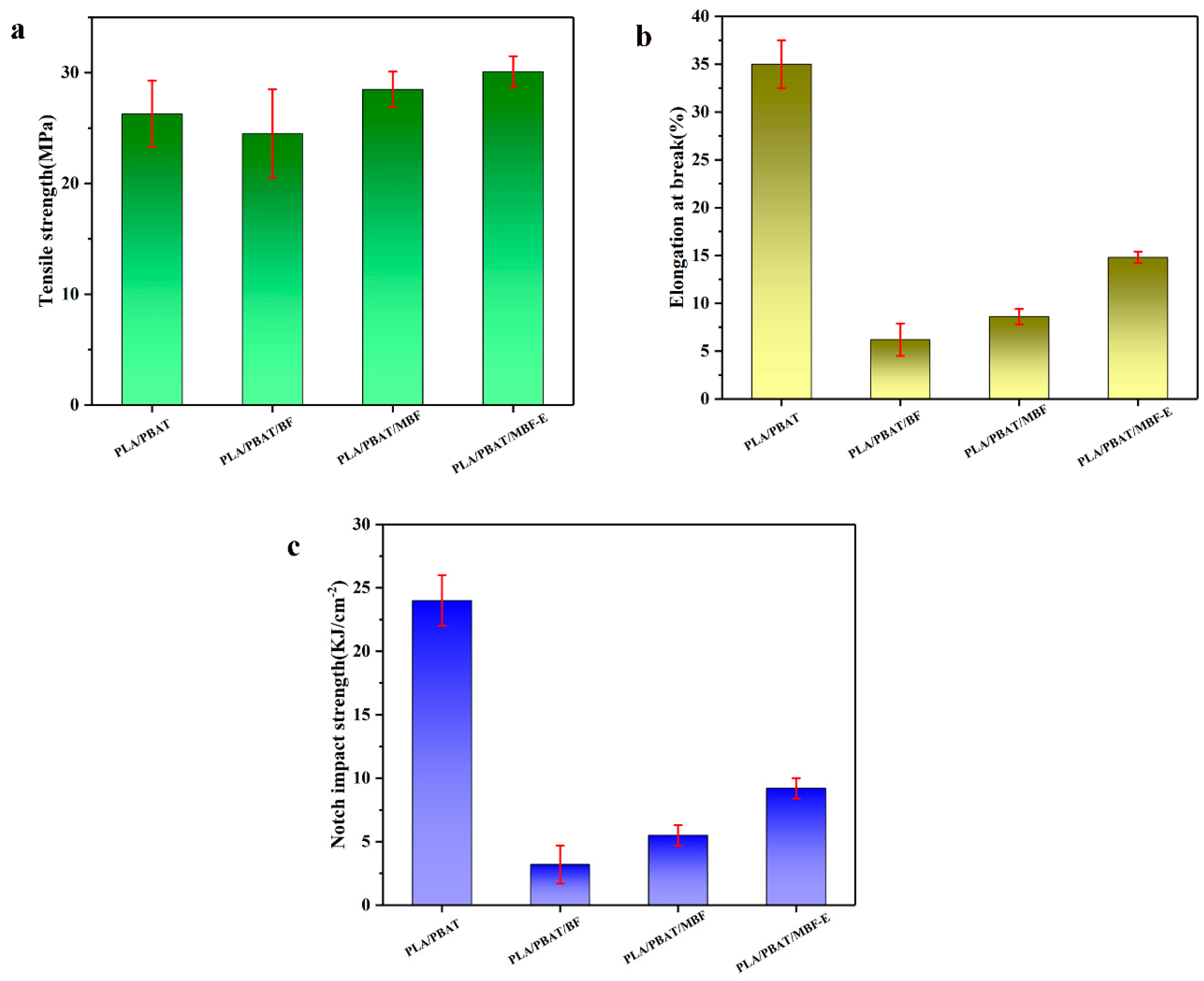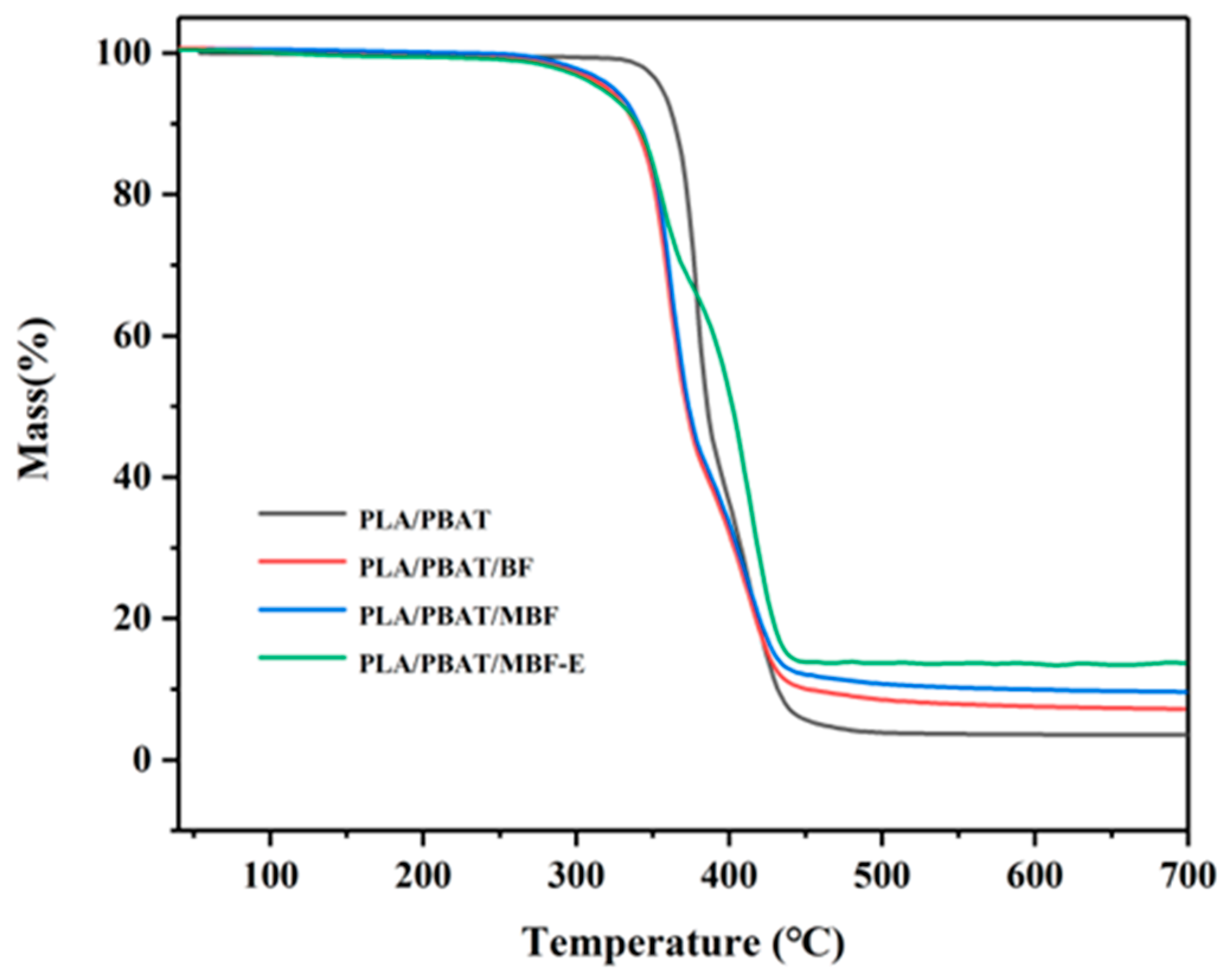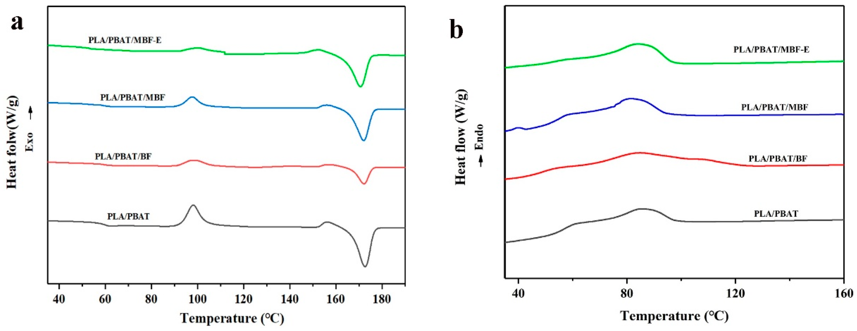 | Sample | PLA/PBAT | PLA/PBAT/BF | PLA/PBAT/MBF | PLA/PBAT/MBF-E |