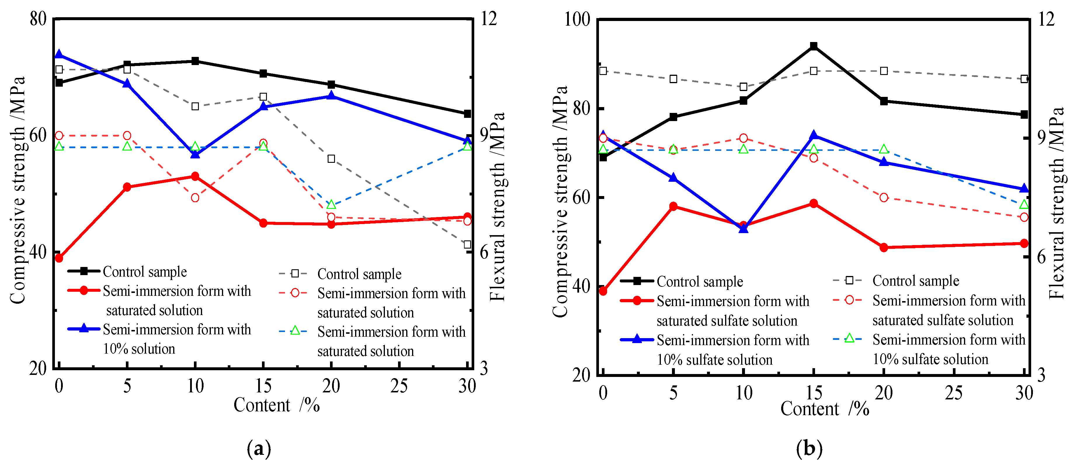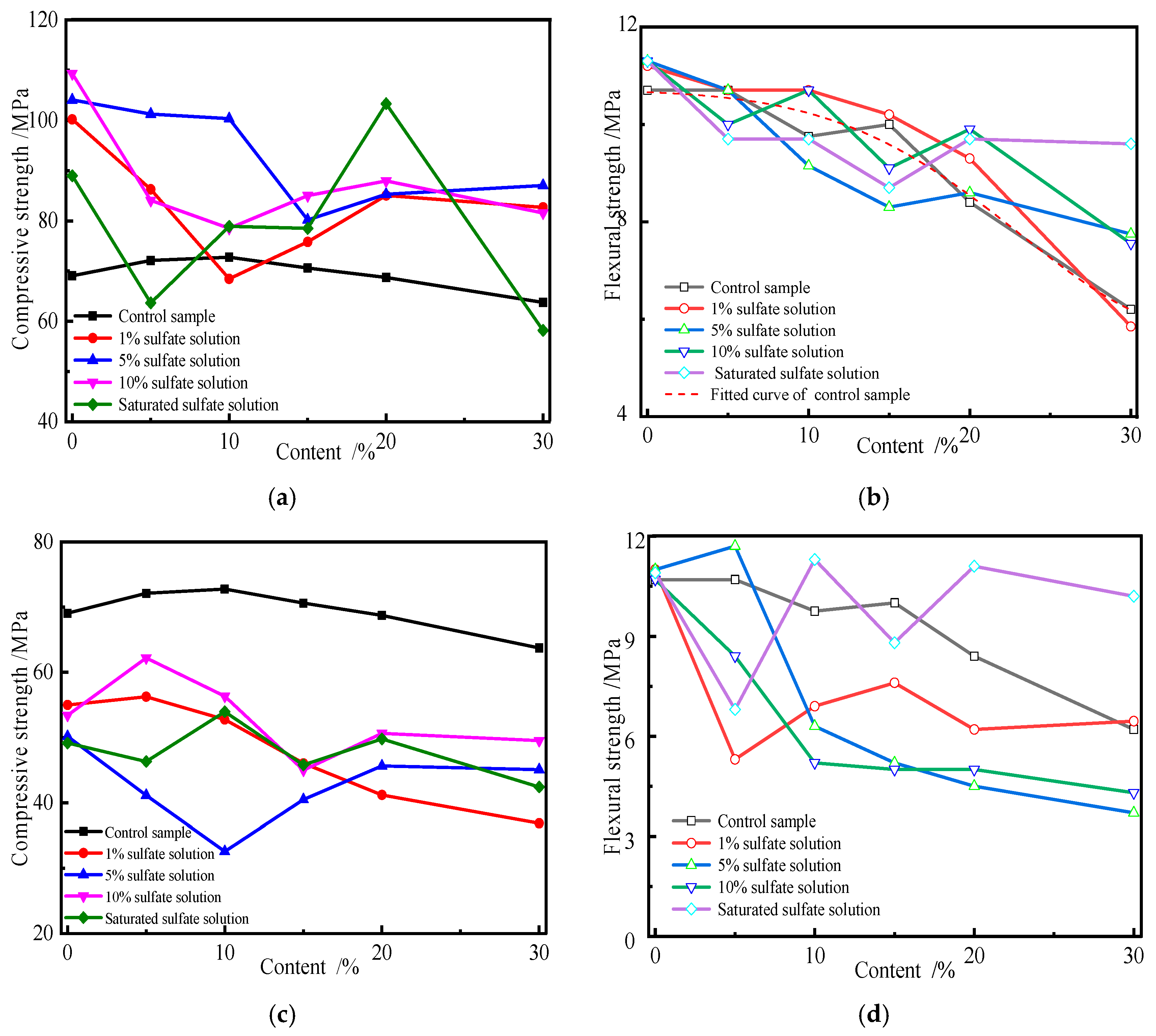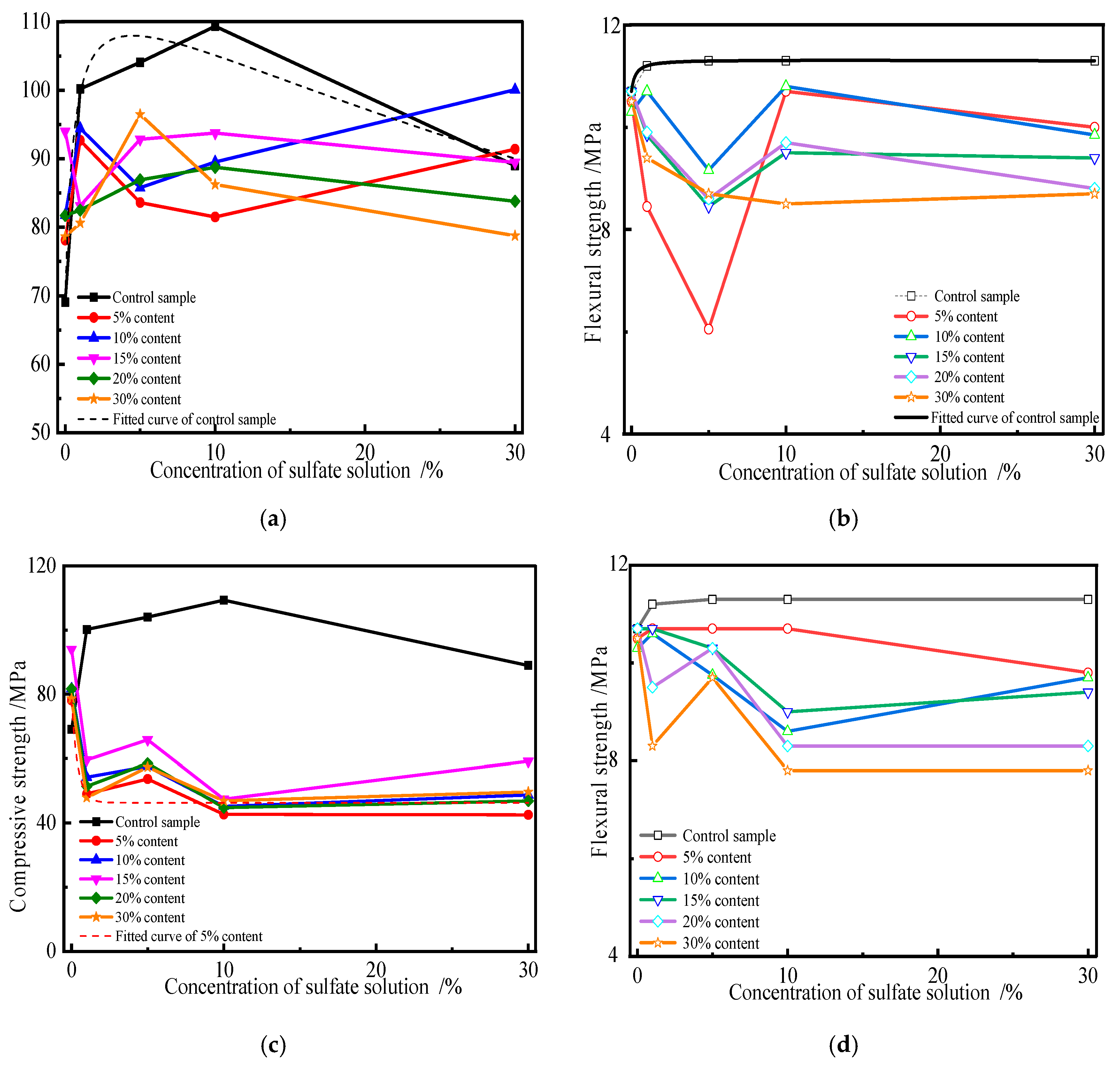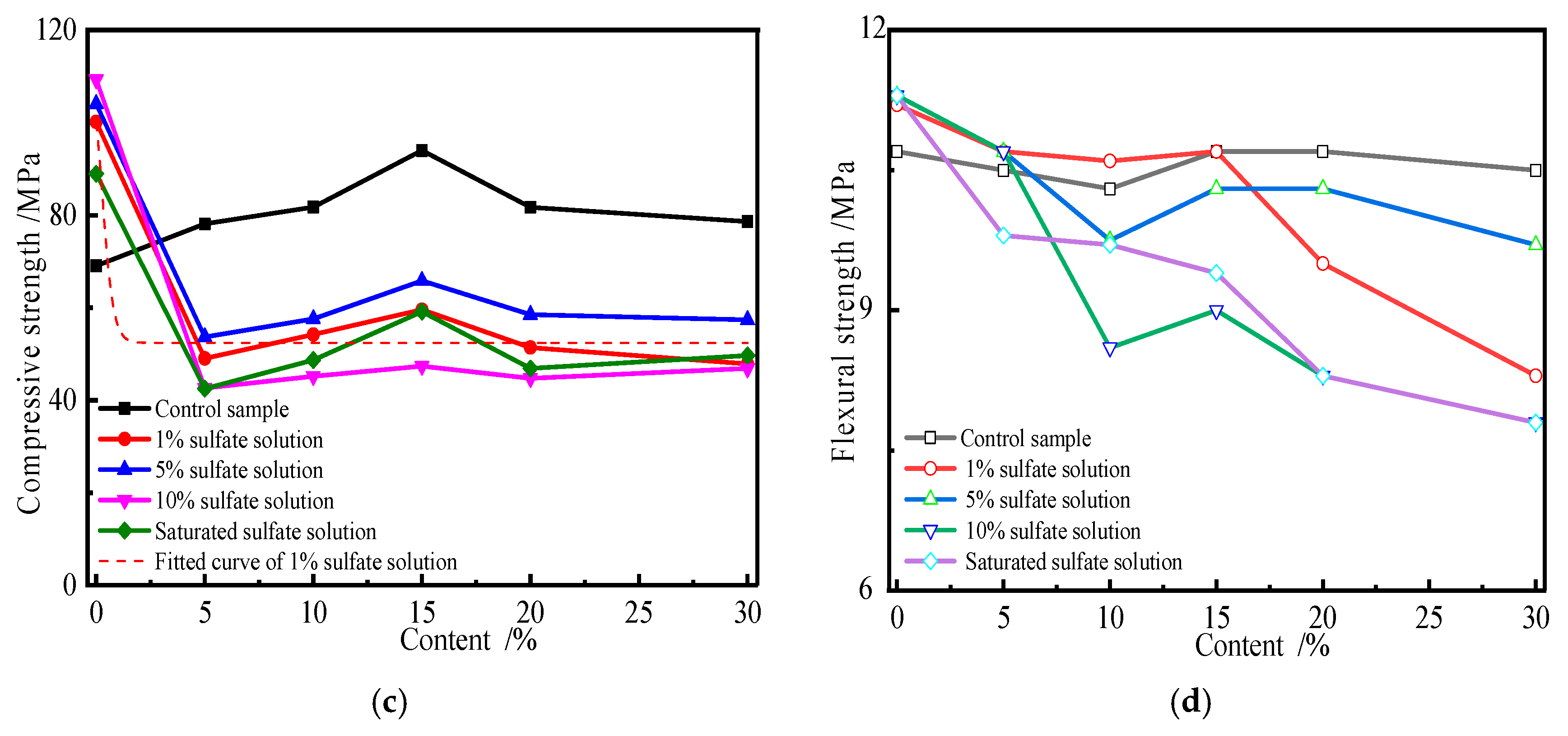 3.2. Effect of Concentration of Sulfate Solution on Strength of Specimen