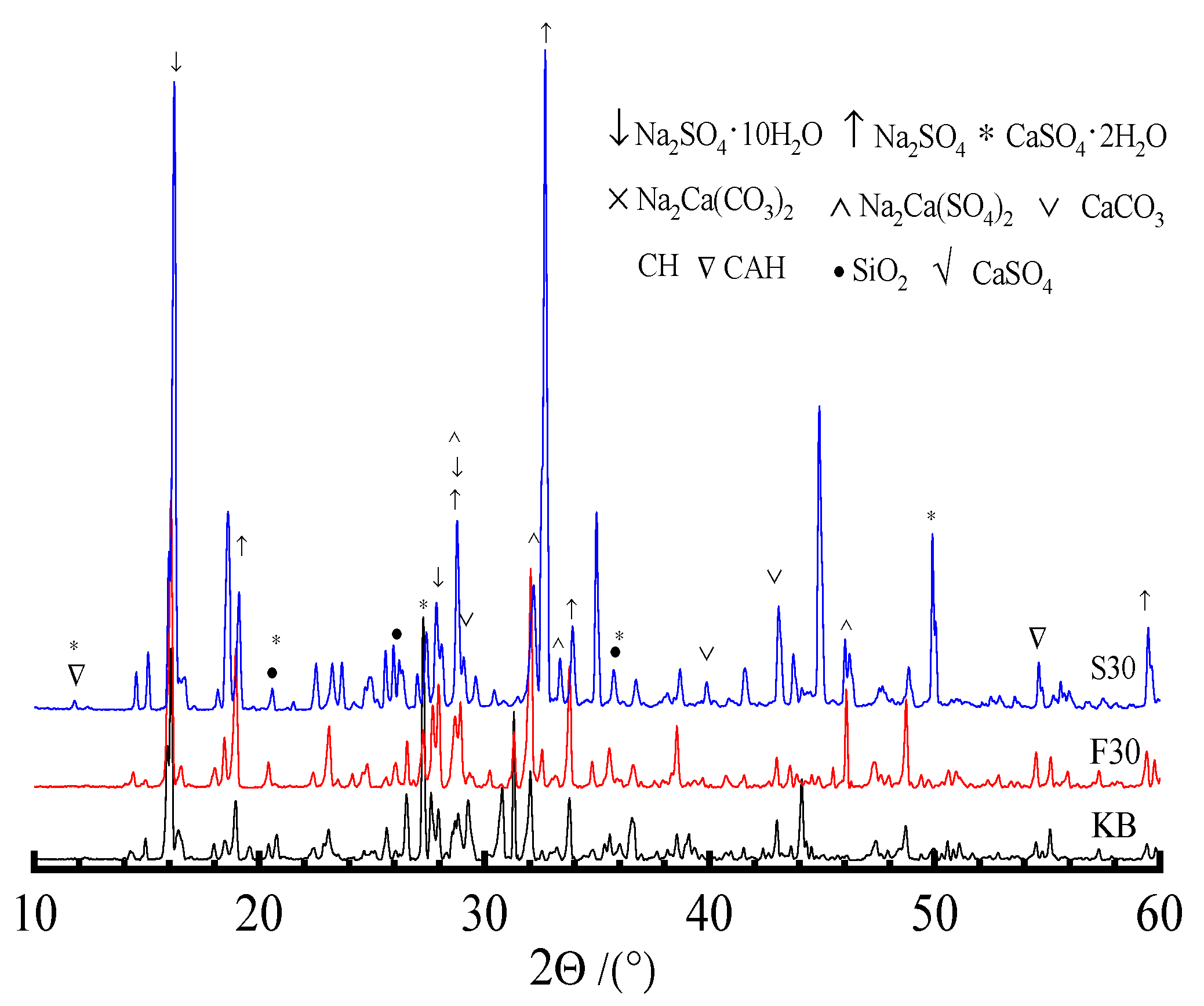 | CAH | Calcium aluminate hydrate | C30-S10 | Specimen containing 10% slag attacked by saturated sulfate solution in complete immersion form |