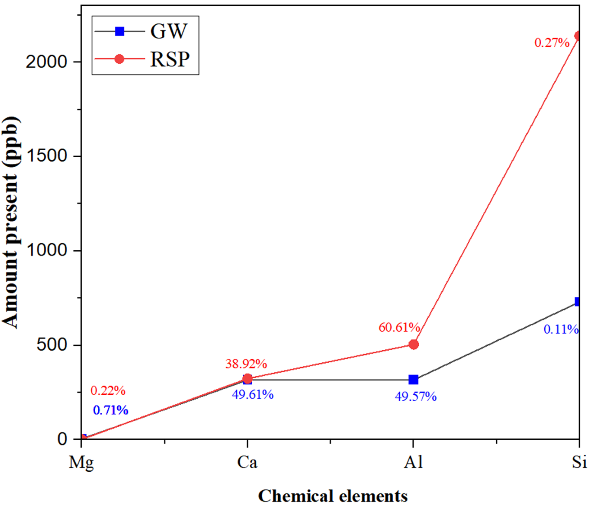 - ICP-MS analysis confirmed the highly complementary composition of calcined granite waste and reactive silica with balanced Si/Al ratios fulfilling the effective geopolymerization requirements.